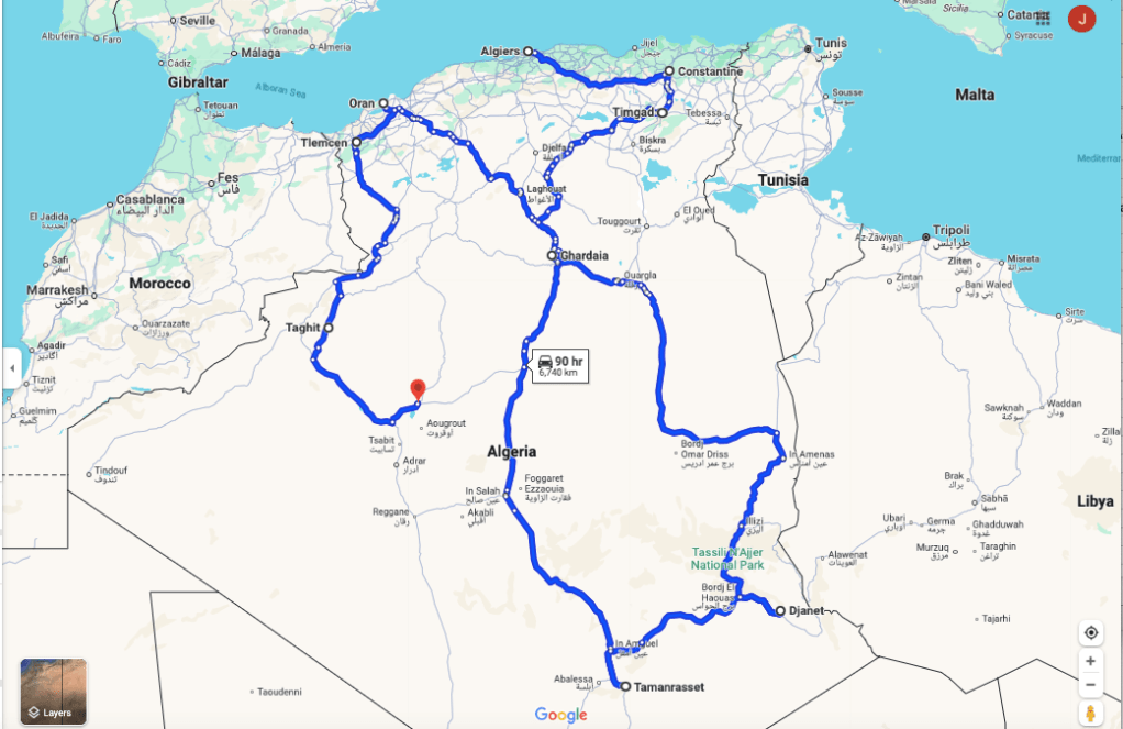 Algeria is not for the faint of heart. Between a daunting visa process and poor tourist infrastructure, the biggest country in Africa has long been on adventurous travellers’ bucket’s list. I had first booked my Paris-Algiers flight back in 2020, but then Algeria was closed for three years during Covid. Finally, alhamdulilah/thank god, as they say, I am here full five years later for a six-week winter escapade.