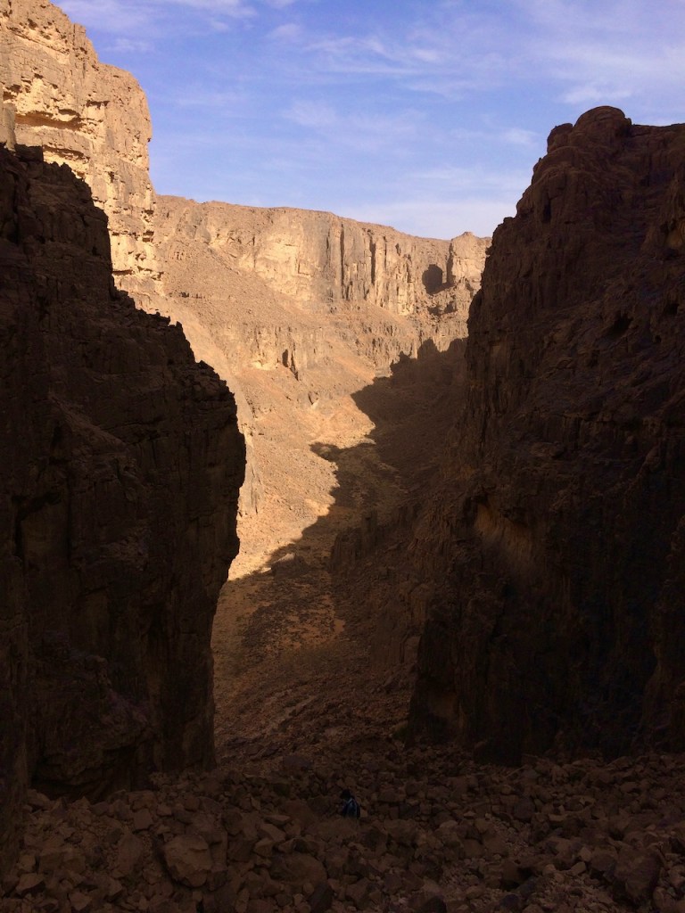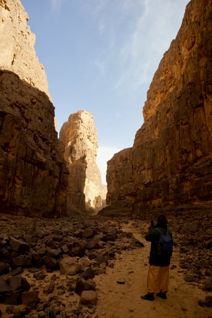 Most travellers – time and visa permitting – would go on to Timimoun, only 600 km away, as the gateway to the Grand Erg Occidental. Due to my 10-day visa constraint, I have to take a red-eye flight instead, arriving at the capital at 4am, and then go queue again in the Bureau des Etrangers to inquire about my visa extension. It’s not ready! the bald guy says, reassuring me that I could travel with the receipt. So it’s a go for Djanet for a two-week stay in the desert. I settle for a last comfortable night until I receive an email at 8pm from the agency I had the booked the tours with, now with a new – doubled – price! I call to no avail. TIA: This is Algeria!