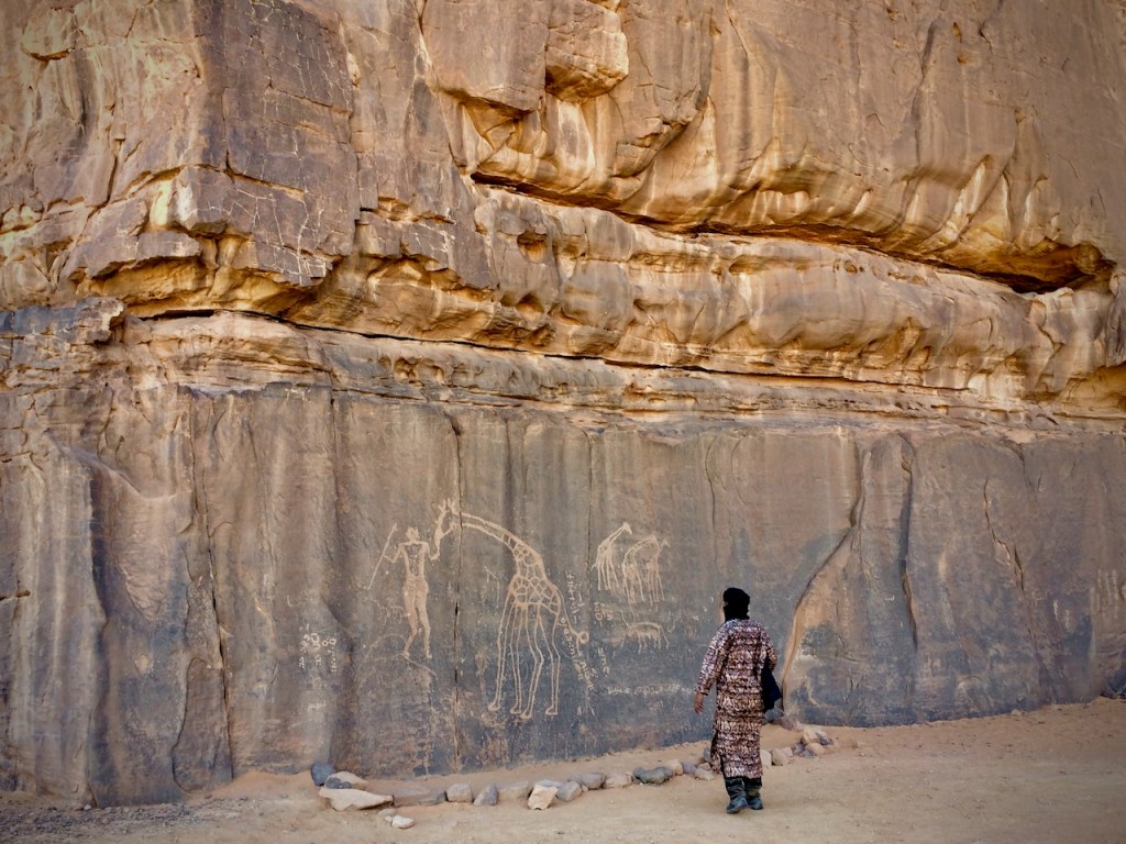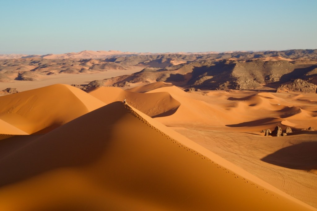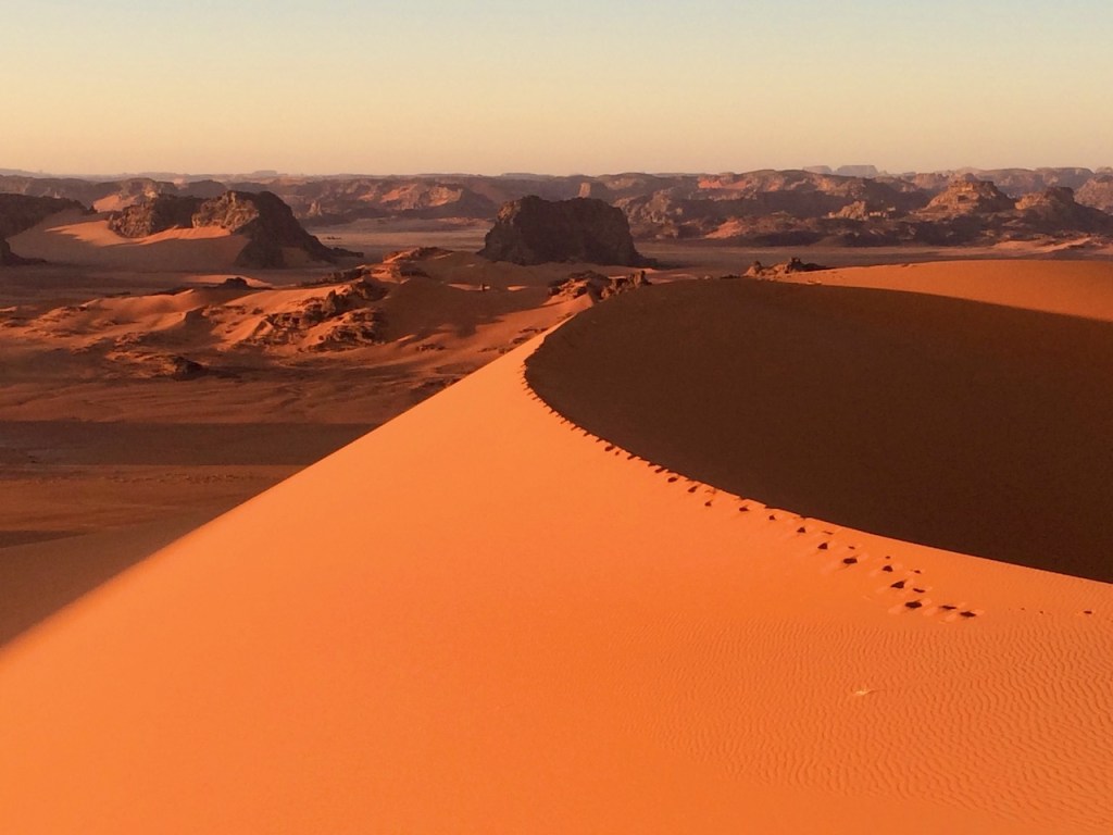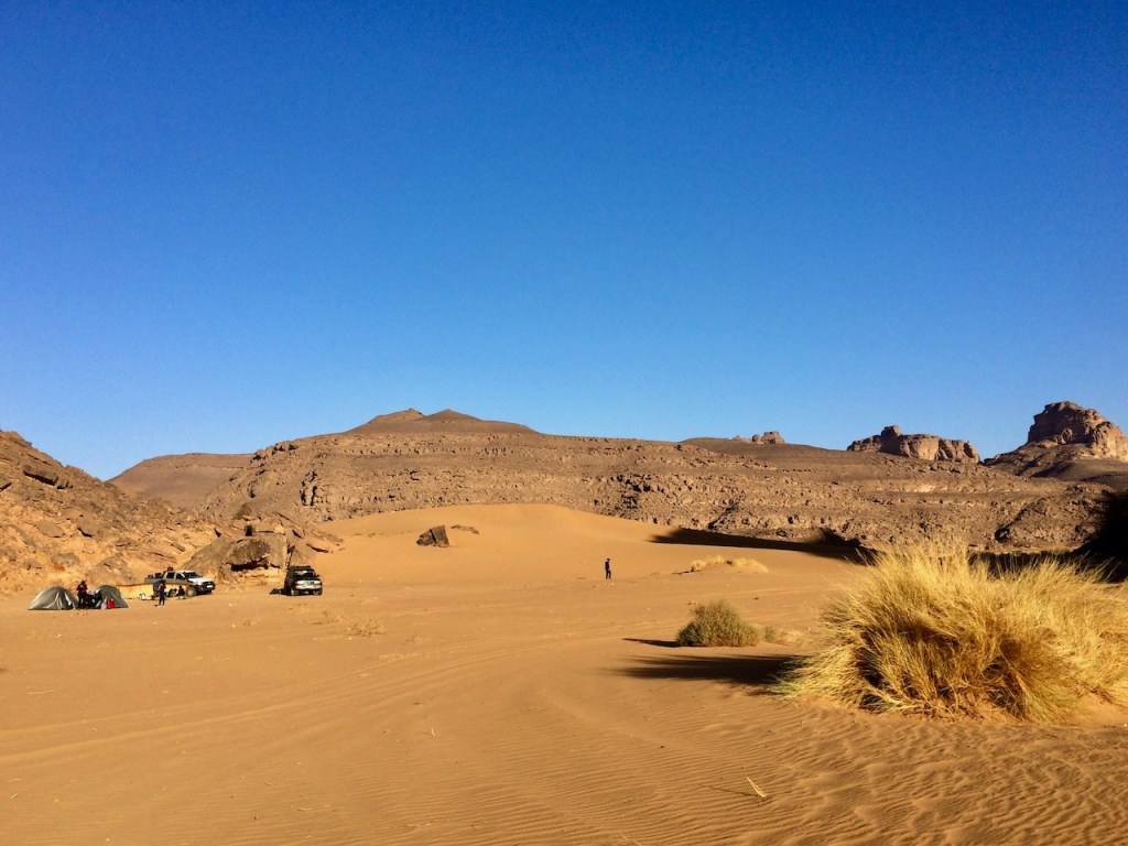 We pull into the Tegharghart Park and make a pit stop to view some rock carvings of giraffes and elephants. Finally, we reach the iconic Crying Cow rock engraving and break camp in the nearby dunes for one last bivouac. Djanet is only 10km away and we could have easily used a hot shower, but Ahmed insists that we stick to the program, aka camping, probably out of fear of being grilled for managing our tour so poorly. In the grand scheme of things – in the Sahara – none of this really matters. We all enjoy one last fabulous sunset, a delicious couscous lovingly prepared by Merut, and the desert tour is over.