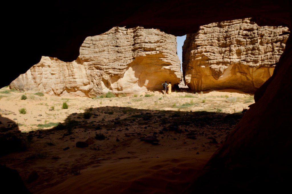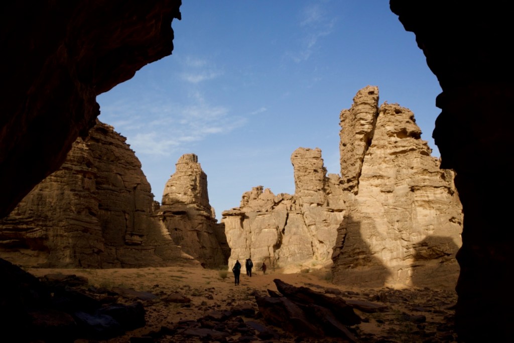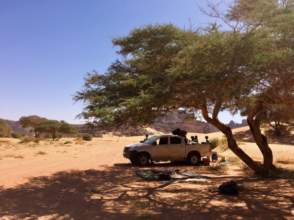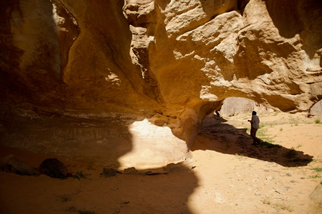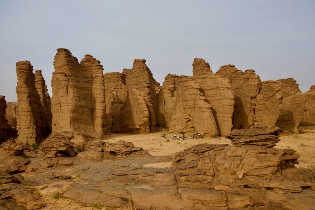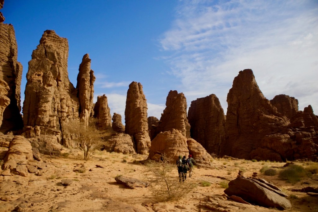 Six a.m. wake-up call by Wafik, followed by morning yoga and breakfast, and departure after eight. Aingafa, Ain Aliwane – where once oliviers bloomed – the Tamrit tomb, and a pause at Ain itinane with gorgeous rock columns. We cross the Etagas Ilyas plateau and take a break in the sprawling plain of Asrire to wait for our donkeys. Mahmood never found his but manages to retrieve two that he had loaned to another group. Onward we go to Tin Tefaltase and Ain Tohami, and reach Sefar shortly after noon.