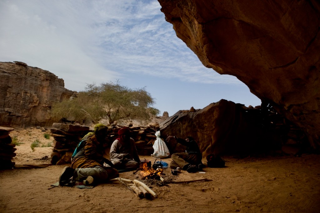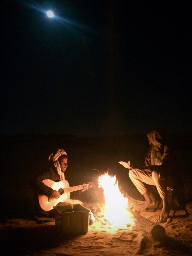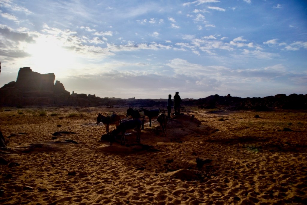 Laeid treats us to a delicious lunch of fried chicken, crispy cauliflowers, and salad before we embark for Sefar Blanc/White Sefar to explore a stunning collection of rock paintings. Cattle herds and hippo, wedding and childbirth, fighting and the iconic Great God. Under a perfectly clear sky with a million stars, Yunus bakes desert bread in the sand, served in pieces soaked in a lentil soup. We enjoy rounds and rounds of ultra-sweet tea and Yunus’ live Touareg blues. My heart is filled with gratitude to be in Sefar, such a unique place. And we have seven donkeys to proceed!