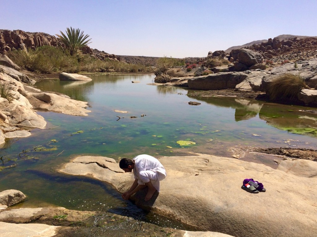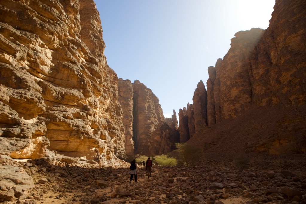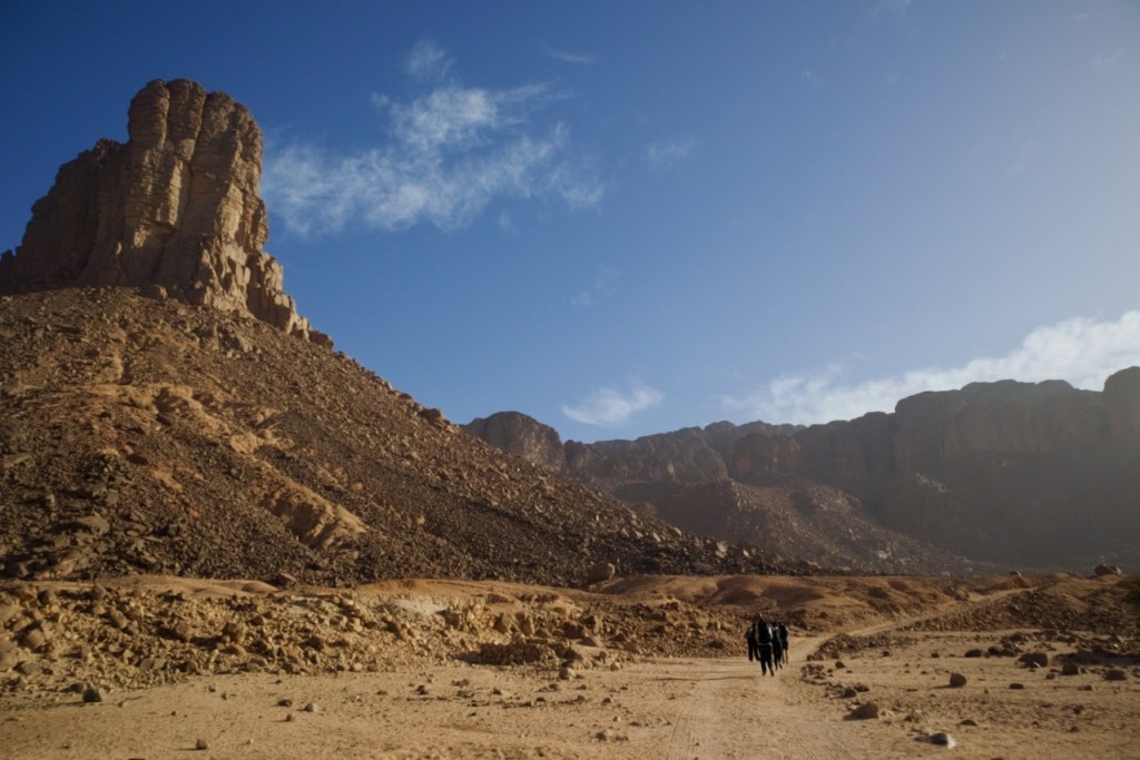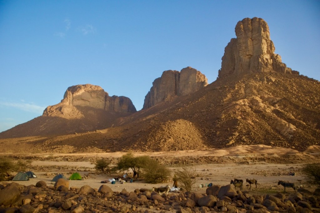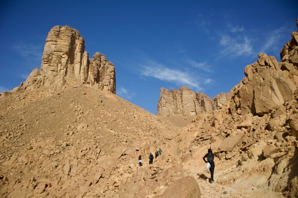 What a pleasure to hear birds and crickets chirping as we start our trek back, crossing a volcanic plain for the entire morning before making a steep descent to Tefeste. We were here, you don’t remember? Ali asks. It amazes me to see how he knows each twist and turn like the back of his hand. Solan, solan, he says again and again, reassuringly, as we approach a second, less hard, descent. Ikimasho/let’s go, he says in Japanese, regaling me with tales of his trekking career, serving clients of all nationalities. Finally, we arrive in Ingharbane, meaning red rocks, used in wedding make-up, he explains.