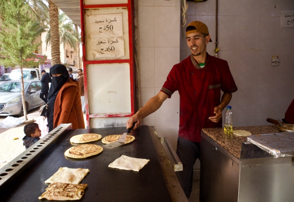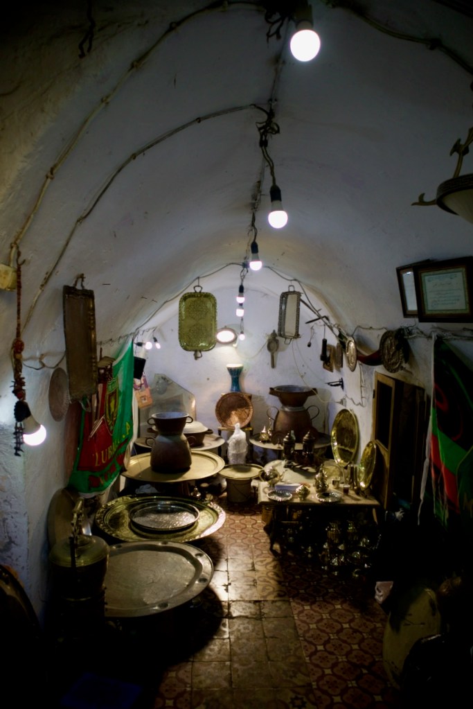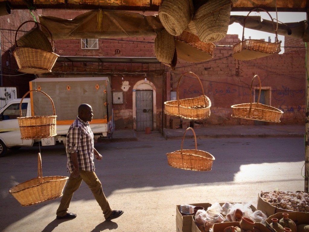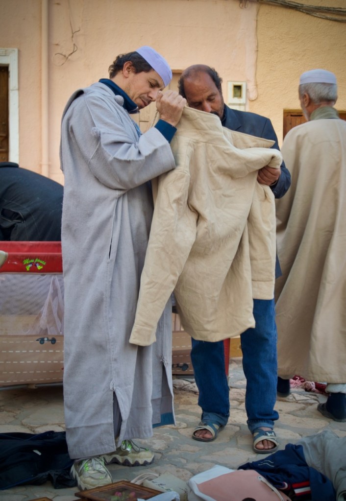 The first iconic view of Beni Isguen, the most enigmatic village with pastel coloured homes and an old mosque perched on top known for her conservative traditions, is unforgettable. Haji, an old guide, takes me through the web of alleyways in an hour-long tour, blurting out years and dates faster than I can note. El Atteuf was built first, then Bounoura in 1046, Ghardaia in 1053, Beni Isguen in 1321, and Melika in 1555! Fully covered married women – with only one eye exposed – come and go, disappearing quickly in the labyrinth. At dusk, men gather at the central square where an animated auction unfolds. How much is the jacket? one asks. 20,000 dinars (0.75 euros), the owner replies. There is some commotion around an old scale and I volunteer to step on it. 43kgs, it’s not working, I say, and the crowd breaks out in a laugh.