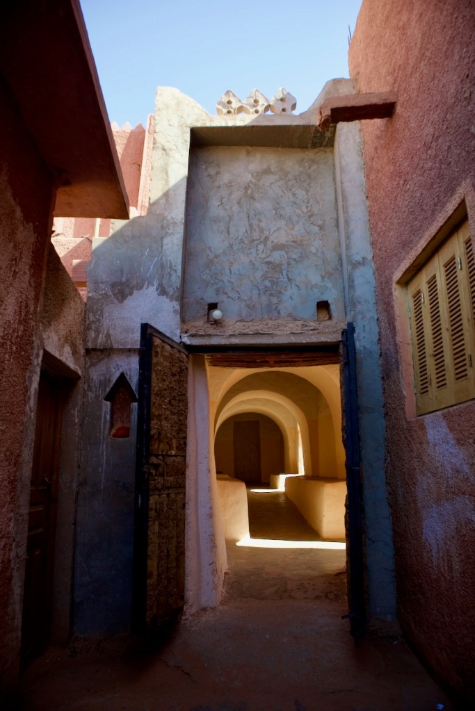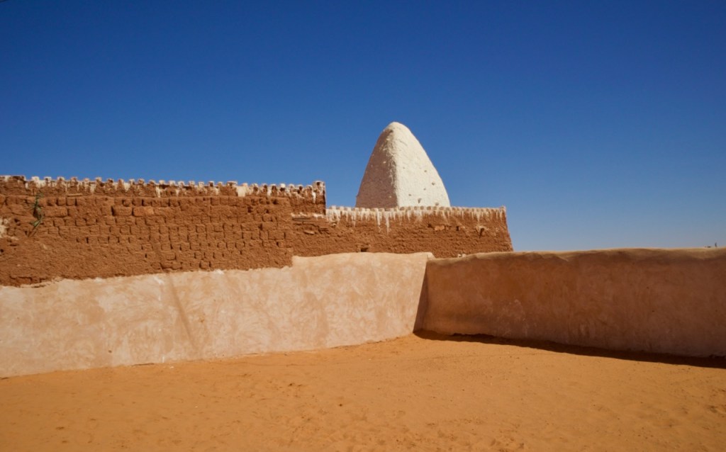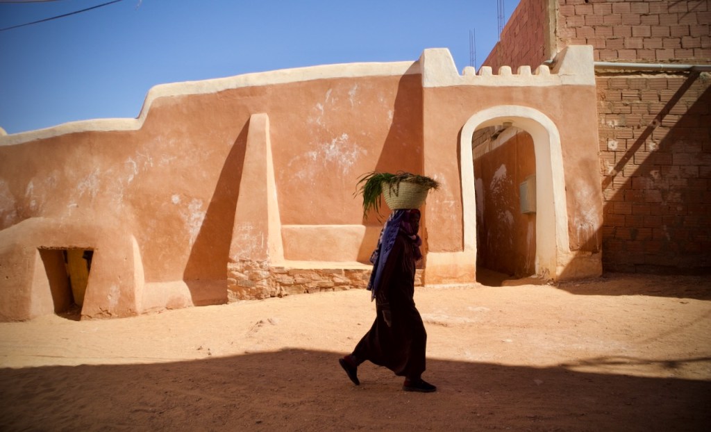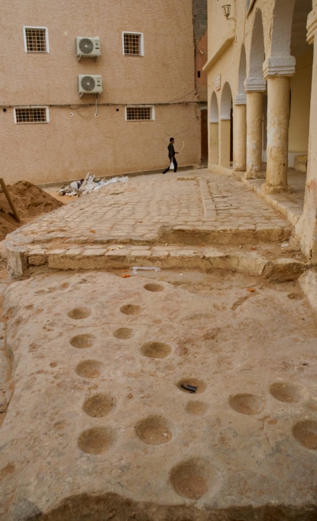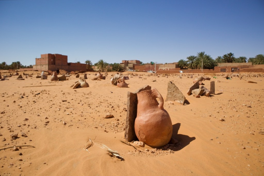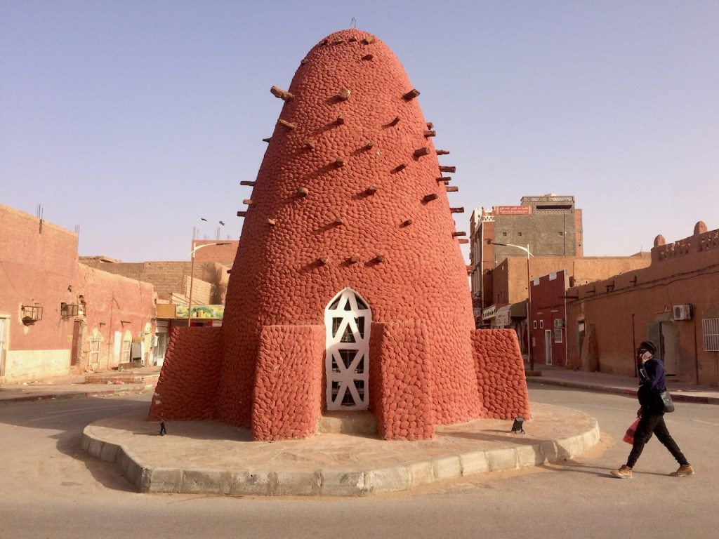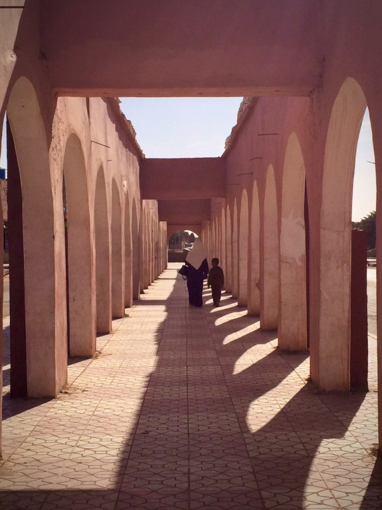 While guided visits are mandatory for Beni Isguen and El Atteuf, one can roam more or less freely in other villages. I take a morning stroll to Melika and then make my way to Bounoura with her stunning old mosque. I keep El Atteuf at the end with the famous Sidi Brahmin mausoleum that has inspired generations of architects from around the world. Built from local materials with stone and lime mortar for walls and pillars, palm trunks for beams, and embedded palm branches for arches, giving each one a different shape, the half underground circular chamber was used for teaching the Koran while an upper room was reserved for the sheikh. The eerily beautiful monument, set in one of the oldest cemeteries, exudes simplicity and transcendence.