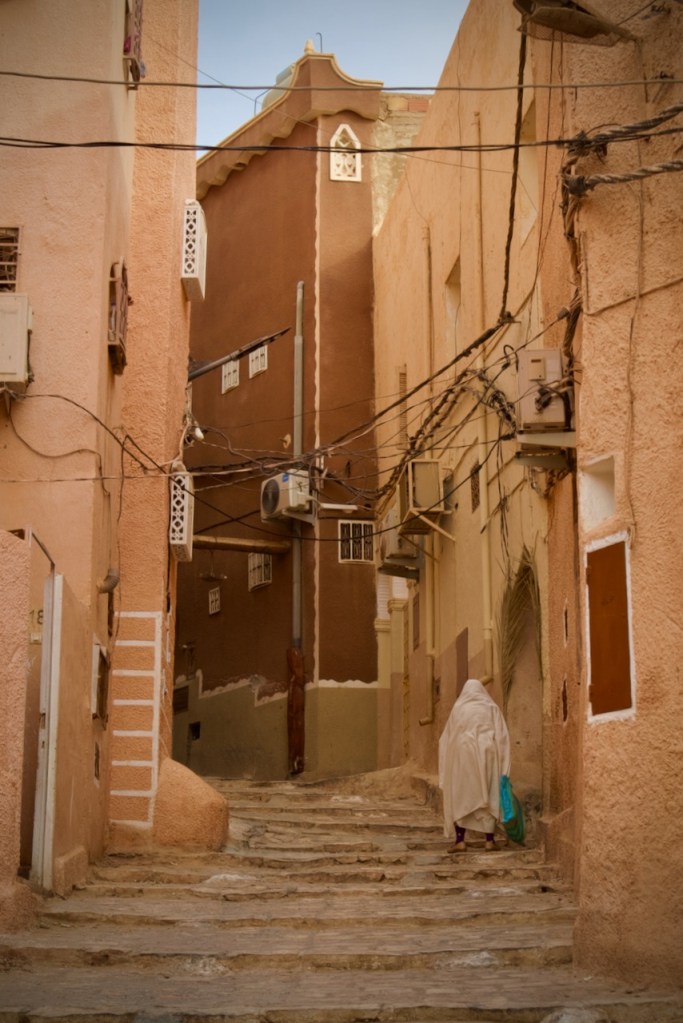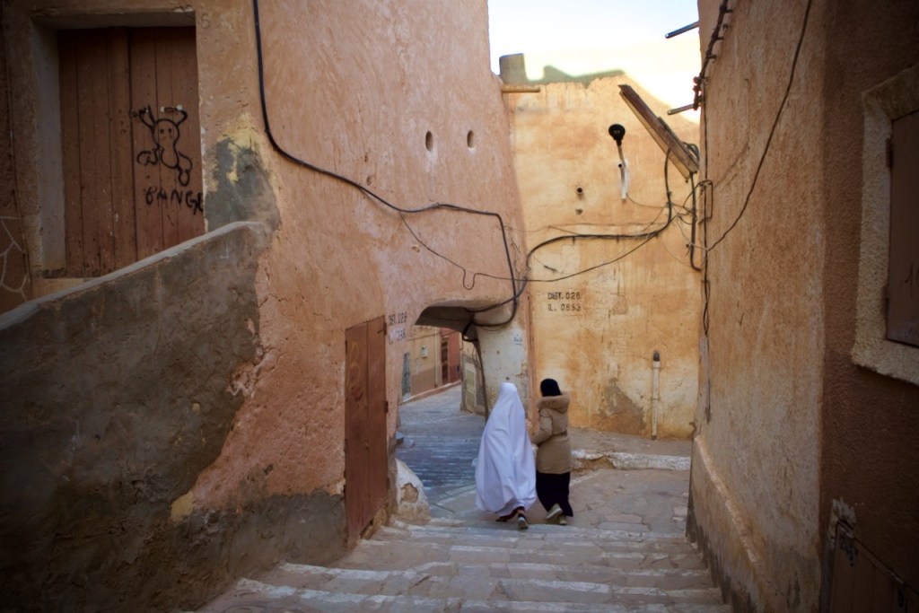 The temperature plummets in Batna and I hunker down in a tiny local joint – in the salon familial reserved for women and families – for a typical chorba/soup-veggie stew dinner till the 8pm bus to Ghardaia. I ask a fellow passenger to dial the hostel number that Vanessa has passed on to inform Nadir, the English-teacher manager, I’m arriving tomorrow, inchallah, at 6am. When I show up at eleven in the morning, some fifteen hours later, Nadir is clearly worried. I thought you were lost! he says. By now, Day 5, I have learned to give up all expectations. Surrender!
