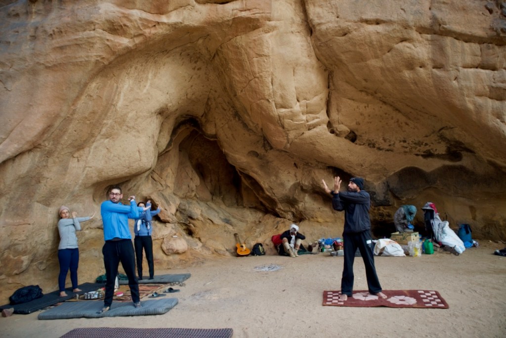 I slept for eleven hours straight and feel recharged to lead a quick yoga session while Wafik does breath work. Danermert/Thank you! I say when Laeid hand me back the perfectly sewed runners the first thing in the morning. Whew, I can continue the trek, and not in slippers! Shortly after breakfast, I hear someone raise the tone – in this idyllic place – and find Wafik talking to our chef and guide about not having enough bottled water and donkeys! Unbeknownst to us, three of our eight donkeys ran away in the night, and Mahmood has taken off to look for the deserters. Where, in this big wild Sahara? I wonder. If they’re clever, they return to the departure point, Wafik says. Unsure whether we could proceed to Sefar, Ali devises a new route to see the spectacular Tamrit Canyon first.