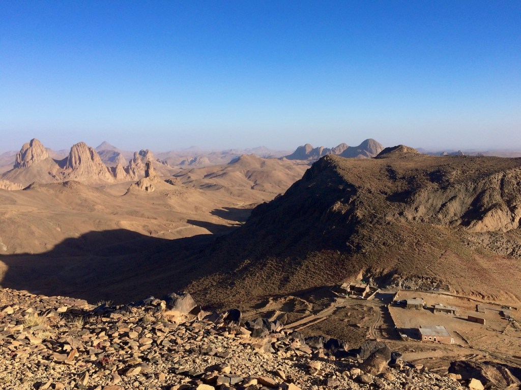 Having booked my out flight according to the agency’s suggestion, I end up having four free days in Djanet to unwind from the intense desert experience. As tour groups come and go each day, I meet interesting travellers and get to enjoy fabulous end-of-tour concerts and some of the best meals like mechoui lamb cooked in a sand pit included in other agencies’ programs. A sandstorm from the south envelopes Djanet in a thick veil of dust. I stay put in a hut, remembering the debilitating chest infection I suffered from the Harmattan winds in my last African sojourn. The Touaregs are one of the strongest people on earth, with such patience, implacability, and resilience. My flight to Tamanrasset is coming up, and I still don’t have police clearance, required 72h in advance to visit Assekrem. Alhamdulillah, Yassine, the Ghardaia hostel owner who lives in Tam, helps me find a last-minute private tour with my dwindling dinars…
