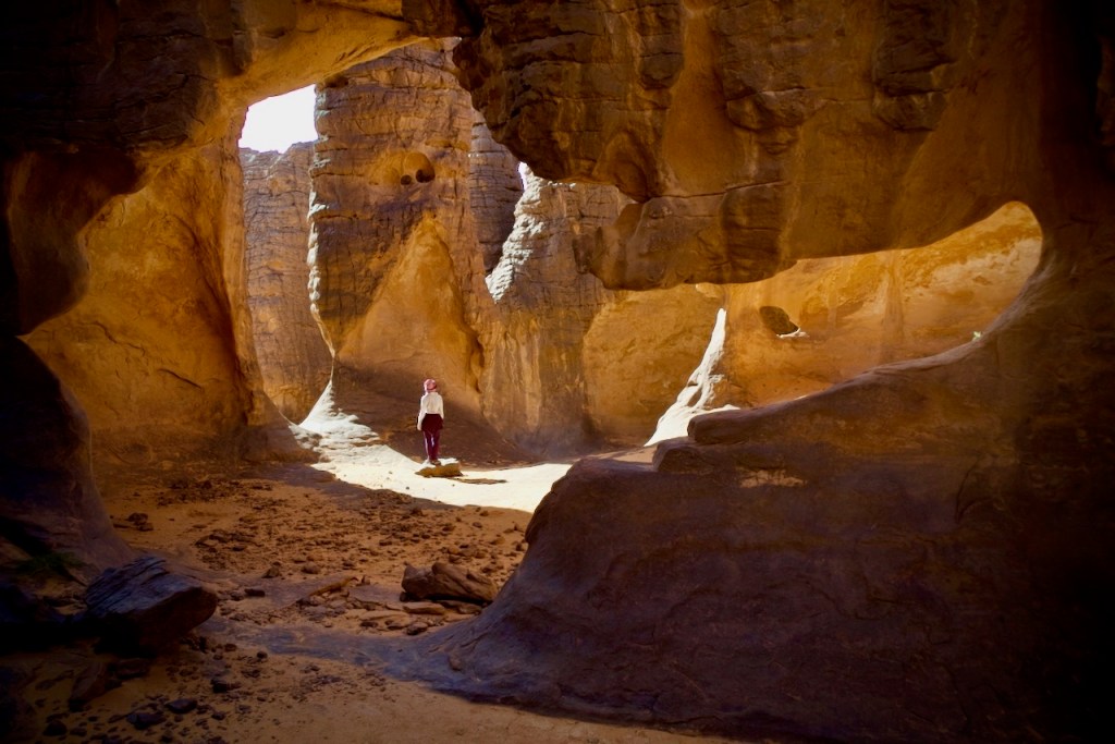 Managing to get the agency to stick to the agreed price by noon (whew!), I change my euros into a thick wad of dinars, becoming an instant millionaire. The flight is delayed, arriving in Djanet after two in the morning. Having received no tour program till my arrival in Algiers, I have little clue how everything will unfold. You start walking to Sefar tomorrow! the agency staff says. At eight! Whatever, surrender, remember!