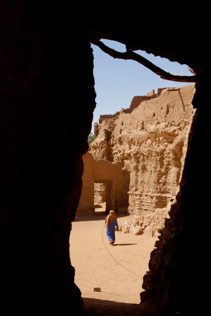 The jewel of this great desert road for me is Timimoun with a string of lush oases all around, punctuated by old ksours, palm groves, and small lakes in grand dune backdrops. As the bus pulls in the station, I am intercepted by a team of plain clothes police. Where did you come from? Where are you going? Where is your hotel? Give me your passport! Deja vu! What a blessing to be able to explore freely the old town with traditional houses and mosques before taking a shared taxi to Oued Said on market day and lose myself in the hunt for ksour ruins…