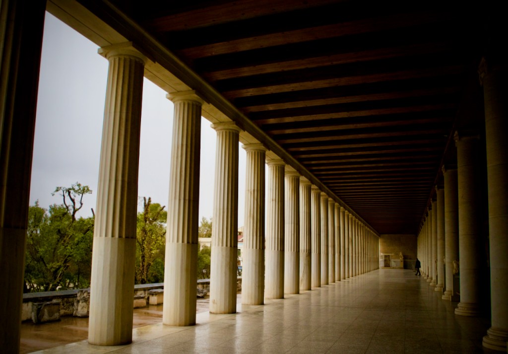 It is first Sunday of the month and most of the sites are free to visit. What a bonanza! Inga, a fellow long distance traveller, and I awake early and make a beeline to the Acropolis entrance. Despite the lacklustre weather, we are both giddy with excitement to revisit the magnificent ruins. From the monumental Propylaea, we inch our way towards the glorious Parthenon – under perennial scaffolds – before reaching the Temple of Erechtheion and Odeon of Herodes Atticus, a stone Roman theatre where I attended an unforgettable summer opera performance years back. From there, it is all within an easy stroll to the Roman Agora, exquisite Museum of Byzantine Art, Ancient Agora, Kerameikos, and the Temple of Olympian Zeus. You don’t even have to be a history or art buff to appreciate any of these. At once a citadel, home to kings, and the mythical abode of the gods, the Acropolis was the epitome of ideals in Greek thought and architecture. Like Cavafy wrote, I have gazed so much on beauty that my eyes overflow with it!