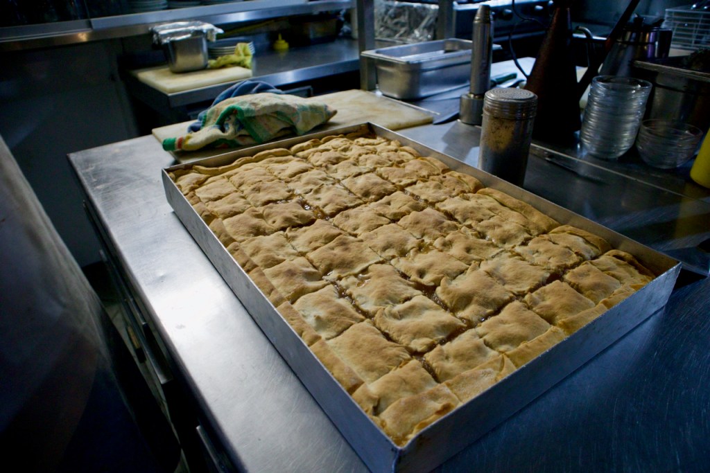 My dad was in NYC before he returned and opened this restaurant, Nektarios continues, moving between the kitchen and the dining hall. Poor pa, blessed his soul, he died young, at 54, while dancing. Life is so good on Greek islands that one can actually die while dancing. The calamari arrives, so light and delicate that I compliment the chef on his cooking skill that matches every bit his colourful storytelling. We are actually a family of blacksmiths, he confesses. Nychthemeron means night and day, because that was what blacksmiths di, working all day all night. At 60, Nektarios looks younger than his age but complains of fatigue. It’s so much work to run a restaurant, he says, pouring me more wine. In the summer, it’s madness. I taste his signature dish, tender and juicy meatballs from his grandpa’s recipe, as he tells me about his wife and children. Just as I wonder what dessert would be befitting the special occasion, Nektarios brings out a surprise oven hot apple pie – with a burning candle on top – singing, Na zíseis, Jennifer, kai chrónia pollá/May you live, and many years…! What a sweet Greek fellow!