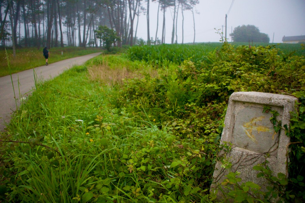 In Boimil, I am distracted by a weekend marathon and follow the wrong variant. Just as I make my u-turn, I spot a tall, slender pilgrim continuing his way. Are you going to Arzua? I ask. It’s the wrong way!