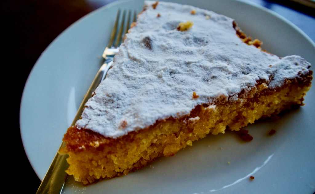 When I arrive at the beautiful albergue, I find my famished son snacking on chips and candies, awaiting check-in. Lunch is urgent and our short day’s efforts are amply rewarded by a tasty menu del dia of pasta soup, fish fritters, salads, and almond tart of Santiago at a popular local bistro.