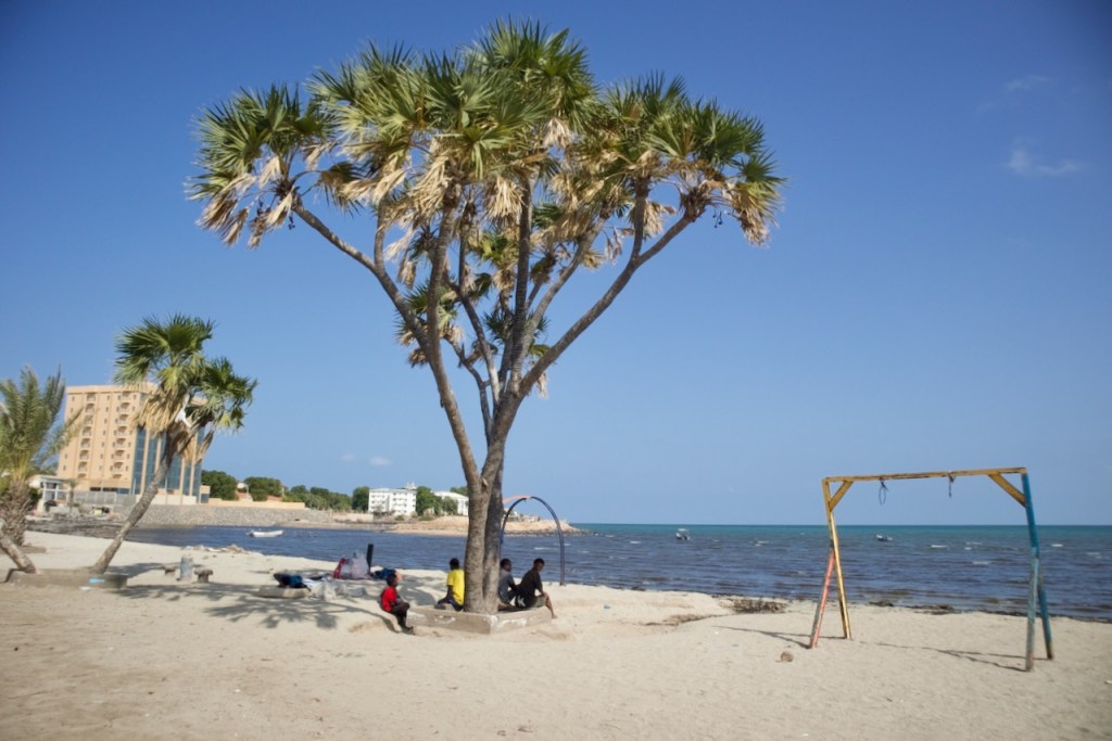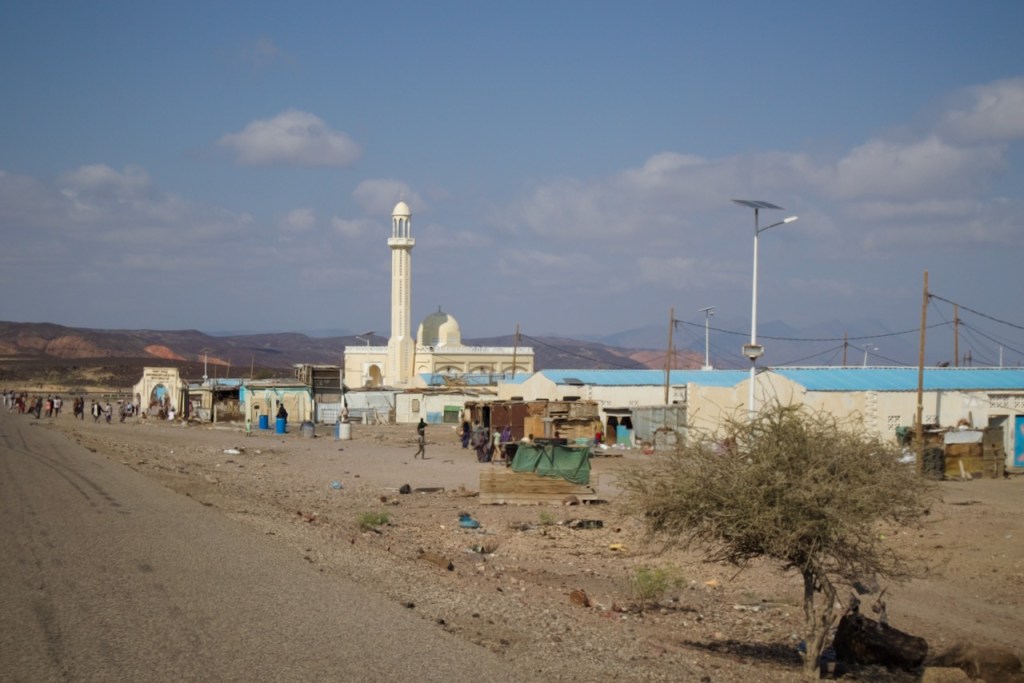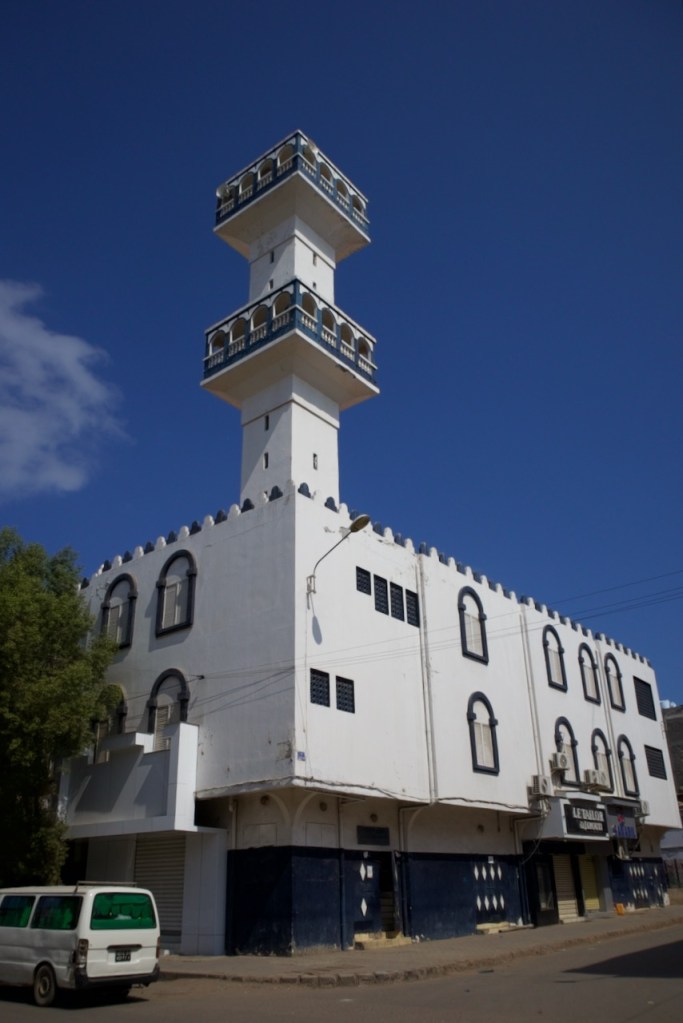 The hotel is conveniently located right next to the oldest mosque and my room comes with a pretty view of the minaret – as well as the punctual muezzin/call to prayer – the sprawling souk, and the bus station, a quintessential African tableau straight of an Orientalist painting. I venture into the old city, meeting rows and rows of khat sellers – non, merci! – dilapidated colonial buildings, and mosques of all eras and grandeur. At the (closed) maritime office where I want to check out the Tadjoura ferry hours, I meet Houriya and Hassan, a lovely local couple who have just returned from a holiday in Addis Ababa, also trying to get tickets. We enjoy a cappuccino and Djibouti French pastries before I make my way to the Palais du Peuple, an iconic old Ethiopian Church, the old railway station, and Hotel Kempinski. The prime land of the corniche is occupied by a French military base, so I join the locals in enjoying a late afternoon dip in a nearby beach, washing off the fatigue of a twenty-four hour transit. It’s over 30C at the end of December. I have to pinch myself to believe I am relaxing in the Red Sea!