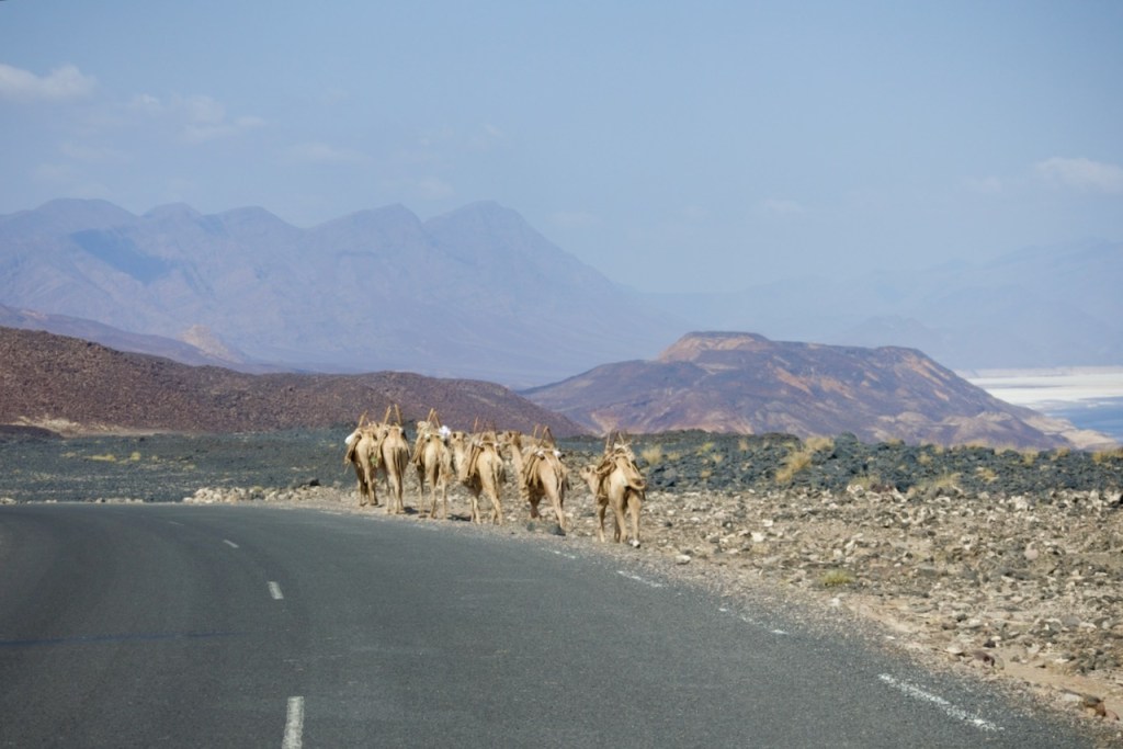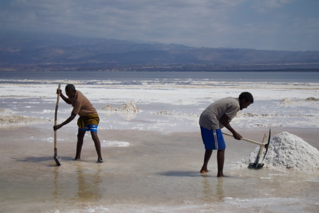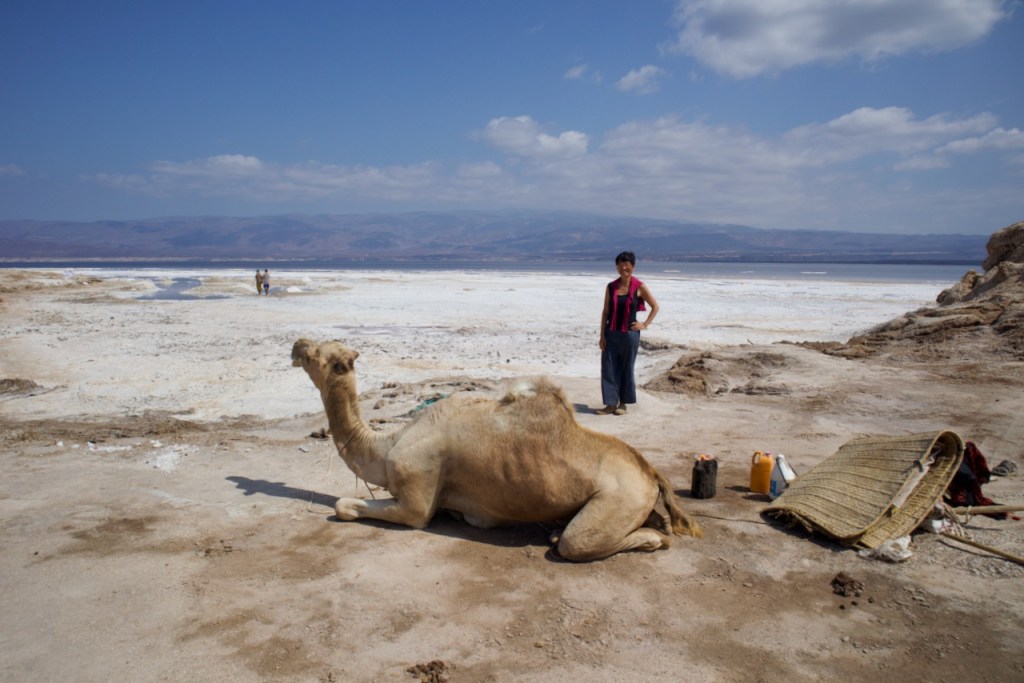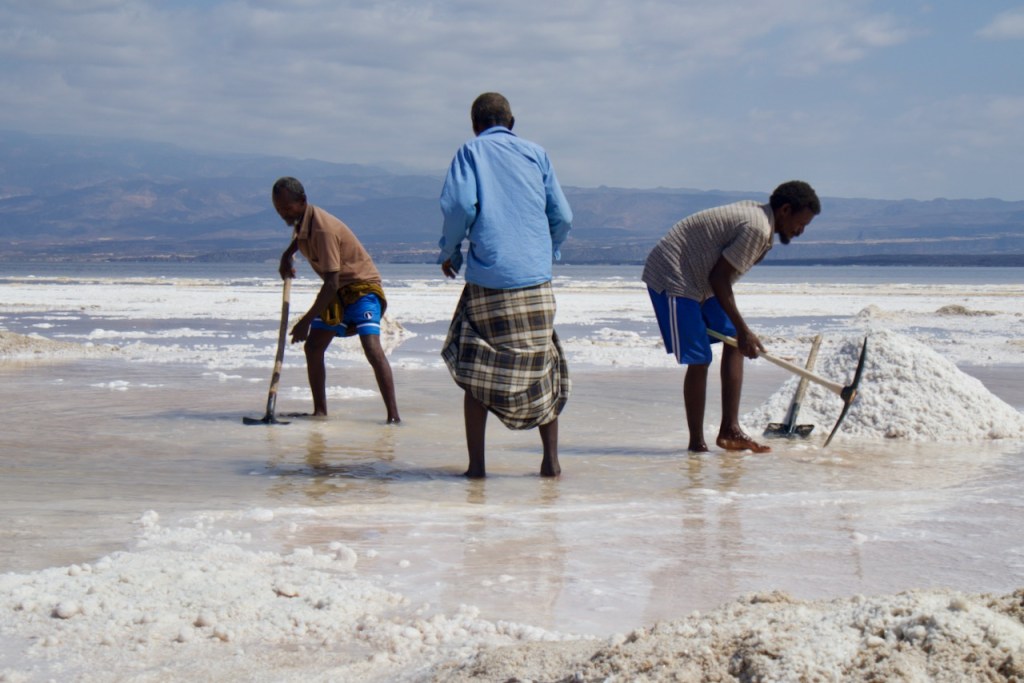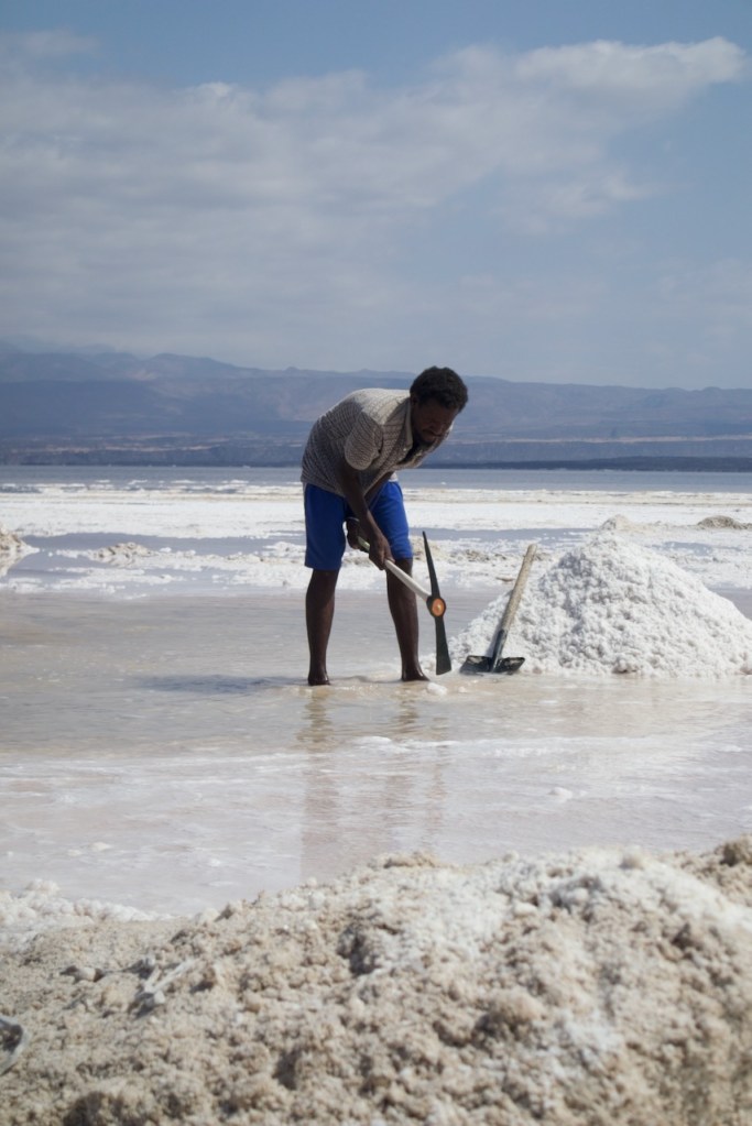 Together with Julien, a Swedish entrepreneur who is here for the whale sharks (none spotted!), and Jun and Jim, a young Taiwanese couple who just embarked on their four-month journey in Africa, we manage to be four for our day trip to Lake Assal (and still being charged for USD110 a piece, meaning the tour operator makes a monthly salary in a short day!). The arid landscape en route is not much different from that in the Afar province in Ethiopia in my journey to the Danakil Depression back in 2021. We pass through small villages, more military bases, clusters of traditional Afar dwellings before we reach the Dimbya Canyon and then a fantastic view of the Gulf of Tadjoura. This is volcanic land and there are plenty of hot springs at 90C! Finally, we arrive at Lake Assal where we see locals mine salt the old way, aka, by hand, before loading it onto camels that make the long trek towards the Ethiopian mountains. Backbreaking work for very little in a fast disappearing old world.