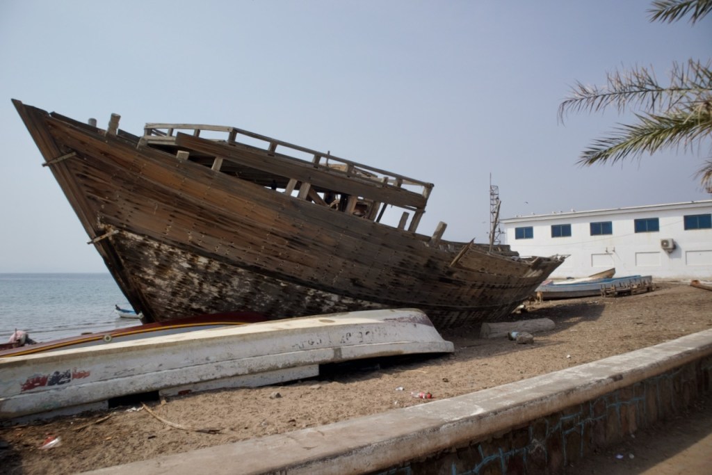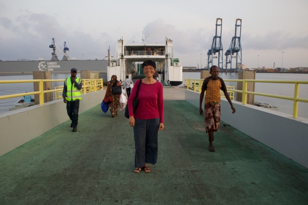 The ferry ticket to Tadjoura is so hard to get that I almost give up. Third time lucky, I arrive at the Maritime Office at 7:30pm just as told to find a crowd all trying to enter the tiny desk. I manage to get a same day return ticket after a real test of patience. C’est Afrique! the young woman queuing next to me says. The ferry leaves at eight in the morning, and you have to be at the terminal by seven. I have a grand total of an hour before hopping on the noon ferry to go back to town. I love ferry excursions, with a bonus sunrise, the sea breeze, and feeling being part of the local rhythm in just another day in Djibouti. Before disembarking, I ask around to get some info in terms of a realistic hour-long visit. Daoud, a college student in telecommunications who saw me at the Maritime Office the evening before kindly took me under his wings to show me his native town. Tadjoura is a quaint little village with a slow paced life. I find it very photogenic, with plenty of old mosques, busy seafront stores and restaurants, and an overall faded feel, as if time has stood still. Time’s up and I say goodbye to my kind volunteer guide, grab a quick bite of fried fish and rice, and find the boarding gate closing. It is December 30 and the ferry is packed with holiday makers, leaving when full well before schedule. I manage to find a tiny corner and fall for a heavenly nap, awaking just in time when we reach the Dijbouti port.