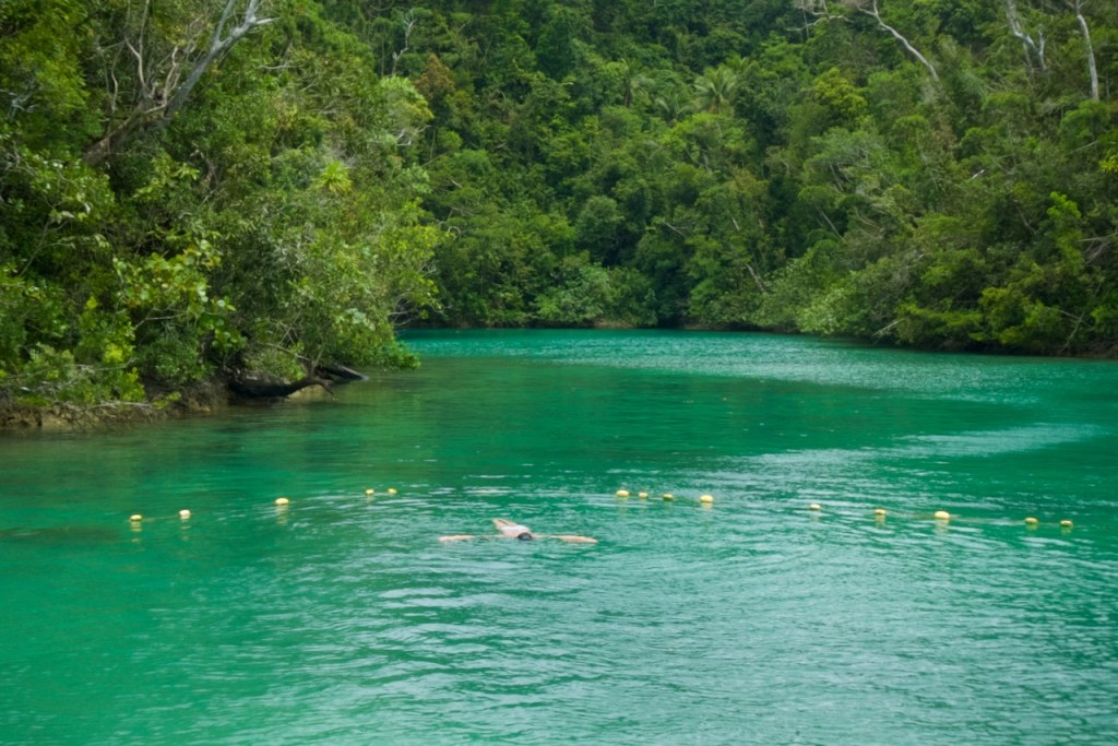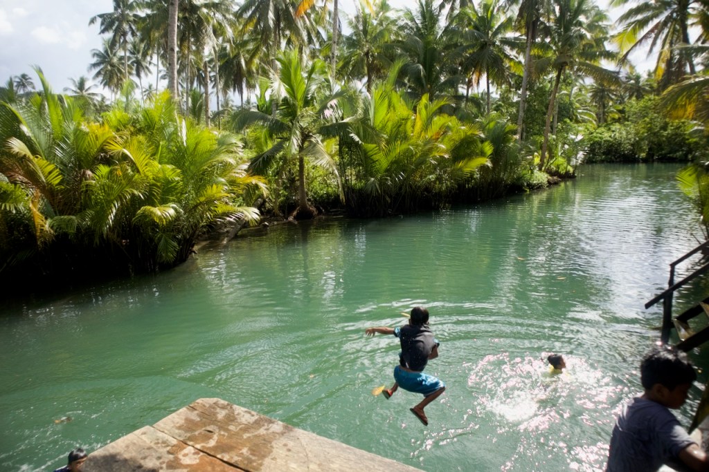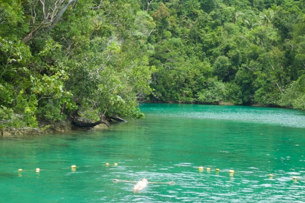 The jaw-dropping aerial view is promising: a lush jungle and mangrove groves, rolling hills and coconut palms, a pristine coastline and emerald water. I arrive on Good Friday and spend a busy Easter weekend touring this little slice of heaven. First stop: Sohoton Caves. From the Dapa ferry terminal, an outrigger takes about an hour along fringing mangroves – the biggest in the Philippines – to Sorocco in Bucas Grande. The bustling departure hub for Sohoton Caves is just a short van ride away. Normally reserved for experienced divers, cave exploration is made fun and easy by a team of Filipino guides, hauling visitors one by one through the narrow cave entrance, shining spotlight on stalactites and stalagmites in the huge cavern, and skillfully snapping pictures with your non-water-proof camera while you try to stay afloat. Nearby is the Tojoman lagoon where, for once, you can swim with jellyfish that has lost its stinging cells due to absence of predators in its natural sanctuary. What a unique experience!