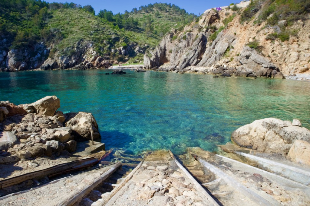 Up North in Puerto de San Miguel, there is a cool smugglers’ cave, Can Marca, where small “lakes of desires” give a magical fluorescent green glow. The nearby coves are a perfect setting for a picnic stop, a world away from the partying spots!