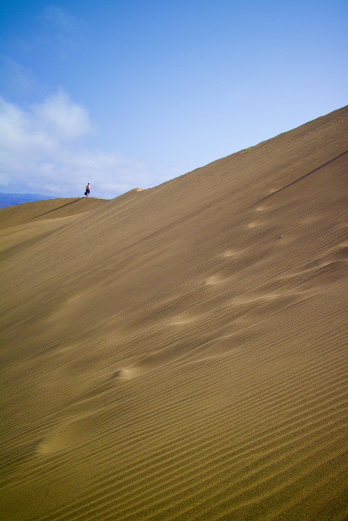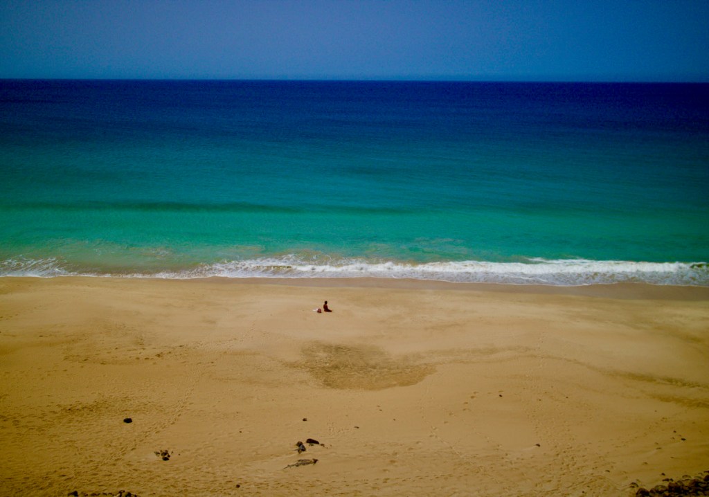 It is early September and sun-loving Europeans are far from ready to return to school or work. Gran Canaria proves to be too much for my system after a year of solo travels. I hop on a turbo jet to the neighboring island, the name of which alone sounds inviting: Fuerteventura/“Strong Wind”. Dry and desolate, it attracts a specific returning crowd who seeks wild landscapes but still within comfort zones. I walk in some more dunes in Corralejo (stay away from German nudists who look for quick beach sex!), feeling the magical pull of Lobos island next door for an athletic day trip. I hike along its quiet coastal trail, climb a tiny collapsed caldera with magnificent views over Fuerteventura and Lanzarote, and wrap up a perfect day snorkeling in the azul water of El Puertito. In the remaining days in Fuerteventura proper, I chill in El Cofete, a stunningly beautiful beach with a massive cliff backdrop, and sunbathe topless next to hippies who sit perfectly still to meditate!