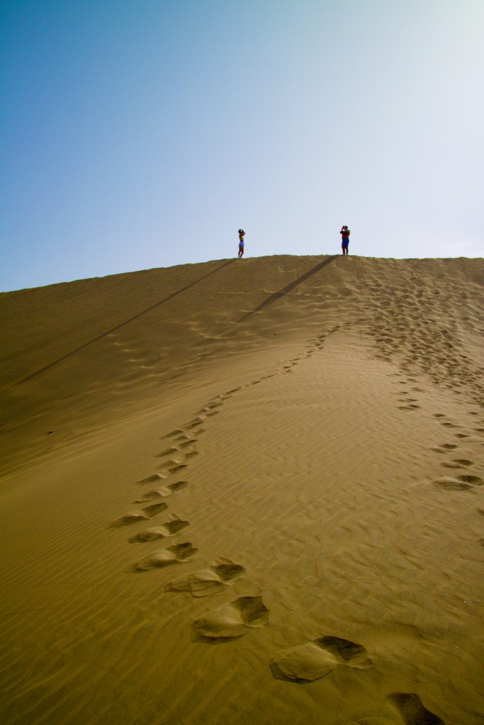 The dunes…! There is something irresistible about the dunes: the purity of the undulating sand, the absolute silence, and utter solitude. In this past year of travels, the Sahara was by far my favourite photo series where I tried to capture the subtle shades of shifting sand and the minute movements of desert wildlife. The first morning upon my return to Europe, without hesitation I head to Maspalomas, known as the “Spanish Sahara”, in Gran Canaria in a celebratory mode. Bypassing Playa Ingles flooded with overweight European mass tourists, I walk from the lighthouse along the beach where morning fishermen are trying their luck. Inching closer to the dunes, I harbor the illusion of finding a lone spot where I might be able to catch my fleeting shadow. Instead I see those of roaming nudists invading the sacred space! Oh, I am fooling myself; this ain’t no Sahara! But it is a consolation, for my transition back to the old continent. The real, one and only Great Desert would have to wait, post-Covid…
