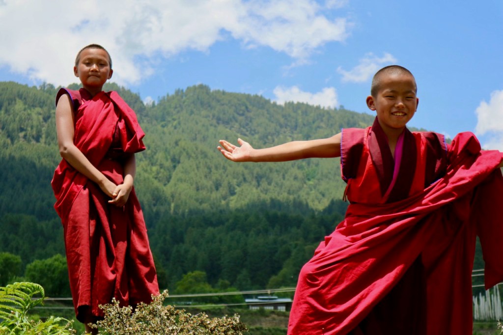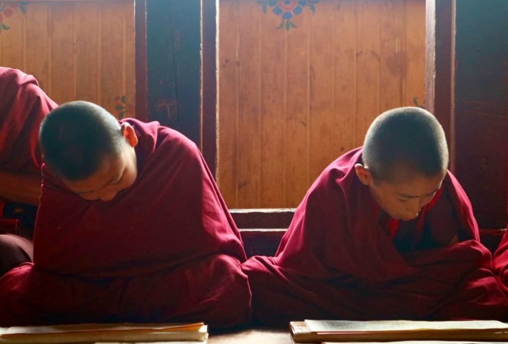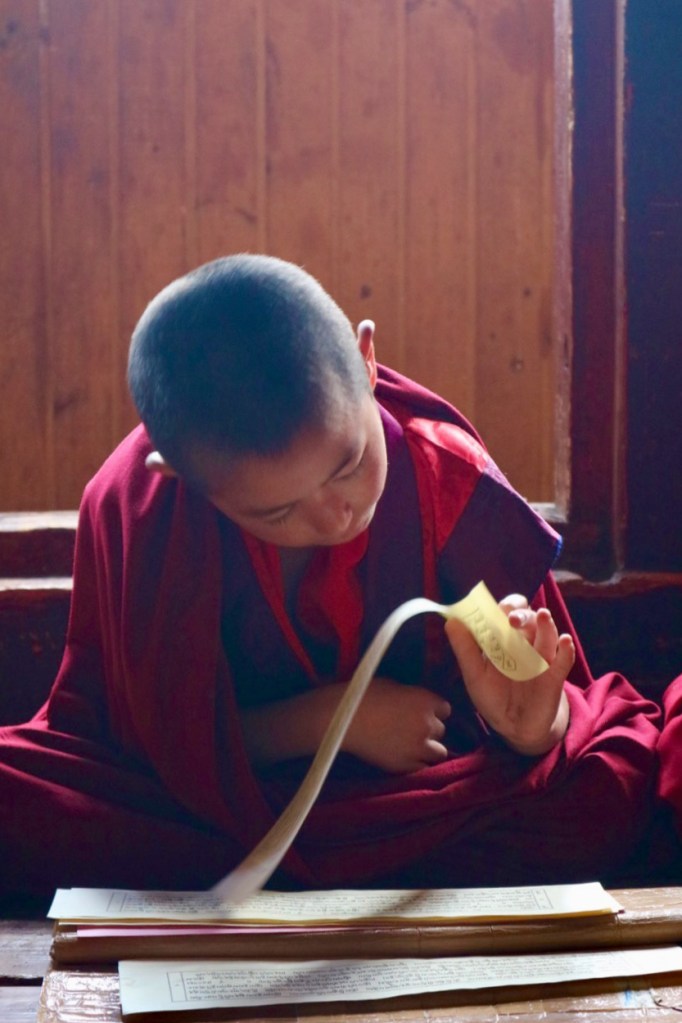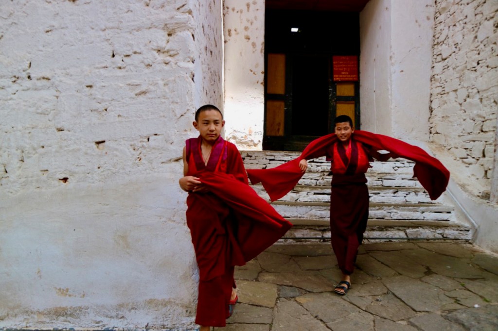 Religion is still very much part of daily life in Bhutan. A supplicant in waiting for blessing, monks passing through roaming monasteries, novices chanting scriptures, devotees circumambulating sacred temples for merit… Also, lighter moments: off time for young monks!
