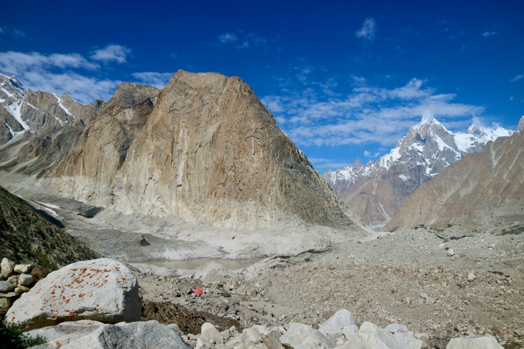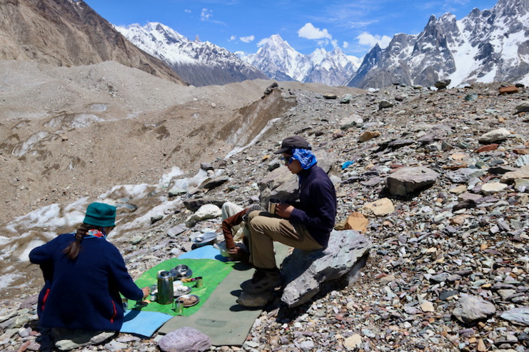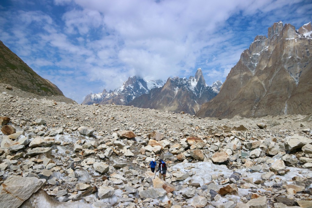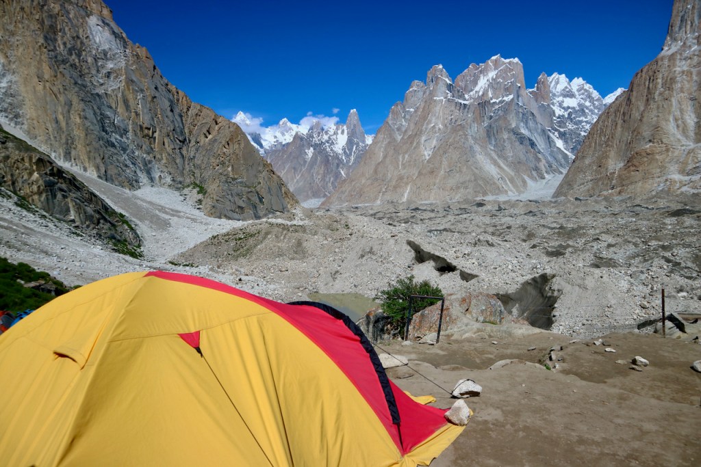 Urdukas means split rocks in Balti. A few years ago, a giant rock did split and killed 5 porters. Overhanging boulders notwithstanding, at 4000m and with an unobstructed view of the majestic Trango Towers, it’s one of the most scenic and liveliest camps where porters sing every evening. We would come to know this beautiful camp particularly well due to the many rest days on our way up and down this trek.