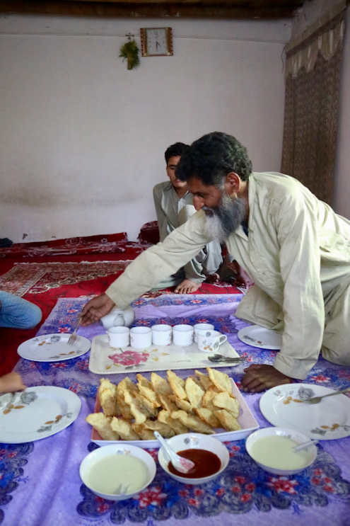 Chefs Nabi and Essa prepare us another feast for lunch: samosas and chai. No spice on the way up for fear of upset stomach, but now we could eat to our hearts’ content, except that I customarily expire after 6pm.