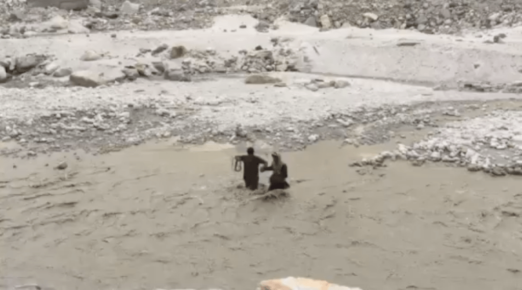 Meanwhile, my kids go ahead of us, arriving at the river crossing just shy of reaching the Khoburtse camp at around 3:30pm. Our porters see them and come down to help, but the water level is chest deep. So they all have to retrace their steps and take a new, higher route.