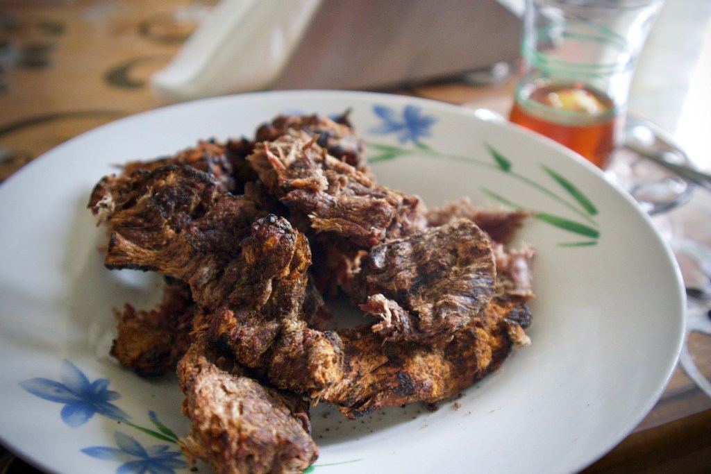 War, displacement, and memory, all recounted over glass after glass of Russian tea. Selim’s life reminds me of the 2021 documentary by Aida Cerkez, the Associated Press war correspondent during the siege of Sarajevo, What’s This Country Called Now?, based on her interview with a 92-year-old retired Sarajevan railway worker, Ismet Tabakovic, who “lived in one house, but five different countries.” Elfetja, his daughter-in-law, now brings out homemade smoke beef jerky prepared in the same antique but highly functional Yugoslavia-era stove…