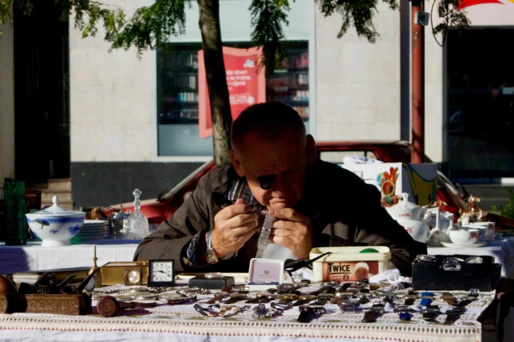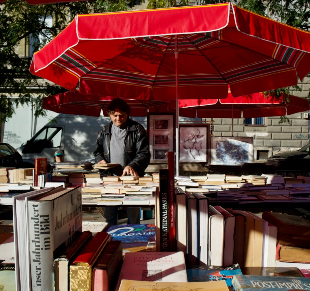 It is the weekend flea market. The morning light casts shadows on trinkets from a bygone era under prime red parasols, happy shoppers scouting for old treasures, and vendors as ageless as the Britanski Square. Ivo Robic’s classic tune from 1958, Samo Jednom Se Ljubi/You Only Kiss Once, brightens up this little universe on a quiet October morning, magically transporting one to the former Yugoslavia!