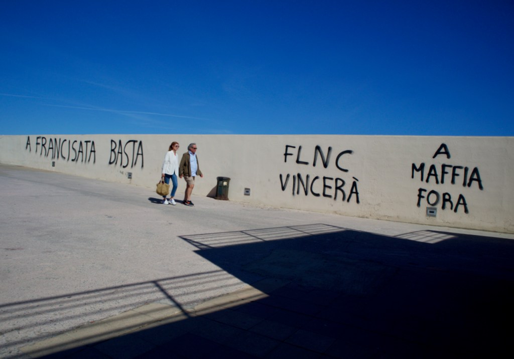 Although not a major metropole, Corsica boasts an active underground street art scene especially on nationalist and independence themes. In Bastia, Ajaccio, and Calvi, it is not uncommon to see political slogans like “French Out” or “French, Go Home.” Given the insidious mafia and drug problems, “Out the mafia” and “Drugs out” graffiti sprays also dot the old town walls. The National Liberation Front of Corsica (FLNC), active since 1976, announced the end of armed struggles in 2014. But the recent sudden death of Ivan Colona, jailed for the 1998 assassination of French police chief, Claude Erignac, after a prison attack reignited nationalist sentiments. The French government has promised some measures of “autonomy” but ruled out full independence. The Island of Beauty is a ticking time bomb. What autonomy exactly? the Corsicans wonder…