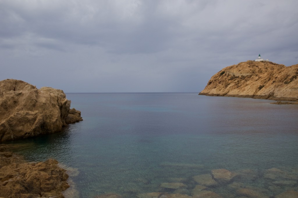 The Calanche of Piana is best viewed from the sea or on land up close. I catch a morning bus that drops me at the trailhead in La Tête de Chien for a beautiful hour-long walk through spectacular red granite formations under a worsening sky. Now the Girolata Bay looks intimidating. Time to head South towards Cargese, my final destination.