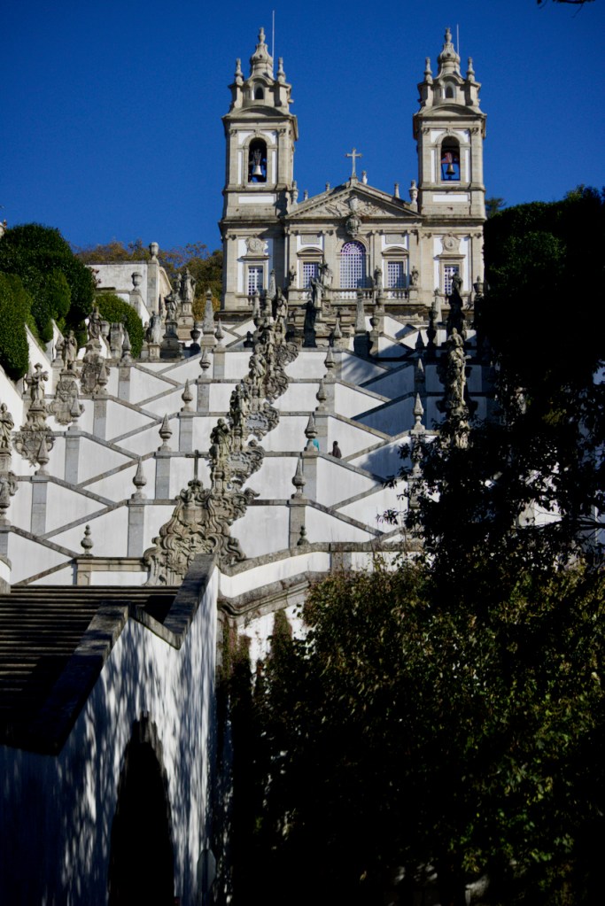 From Porto, I take day trips to Braga and Guimaraes, medieval cities at their best. In Braga, I admire the 1000-year-old St. Paul’s cathedral cloaked in autumn clothes and the Bom Jesus sanctuary with beautiful fountains and gardens, vistas and sculptures, a place with soul. Guimaraes is known as the cradle of Portugal with an old castle and a famous olive tree in the center of the city. In both towns, I linger around the grand old buildings and cobble-stone streets, trying to capture fleeting light and shadow as the sun dips…