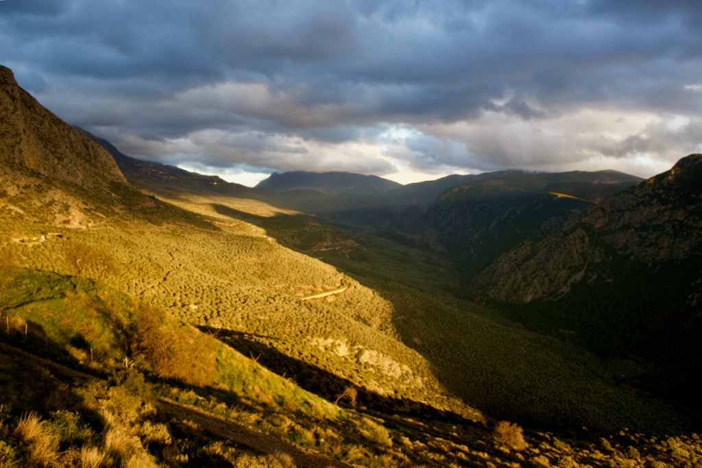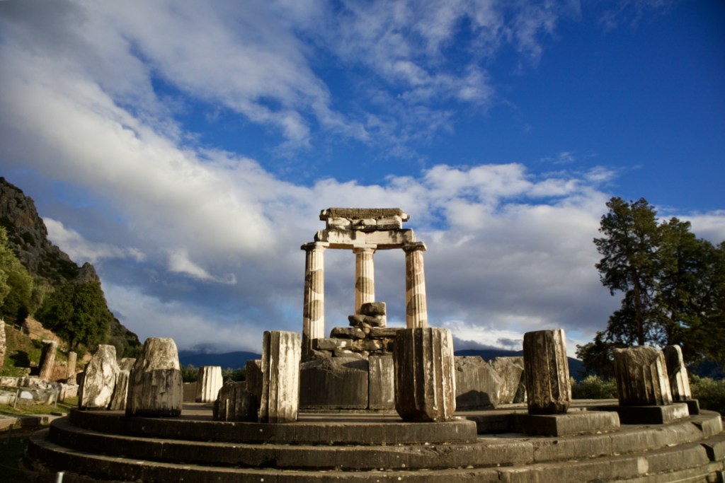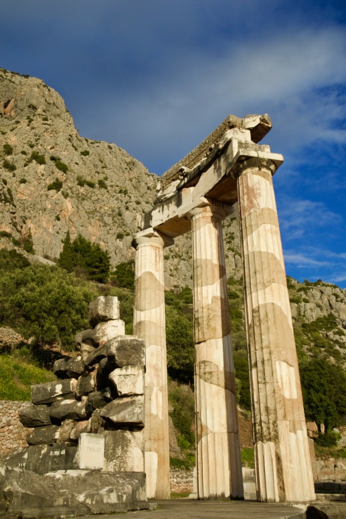 Located on a slope of Mount Parnassus, overlooking the the valley of olive groves and coastal plain, Delphi is breathtakingly beautiful and exudes an incredible spiritual energy. Ancient Greeks considered Delphi – meaning “womb” – the centre of the world, a sanctuary where major oracles were consulted about important decisions throughout the classical universe. I am greeted by a welcome rainbow over the Pleistos River Valley and hurry to the magnificent Delphic Tholos before darkening clouds gather. Lo and behold, the sun makes a generous appearance till sundown. I return to the main site the following morning and have the entire Ancient Agora, Temple of Apollo, Athenian Treasury, and amphitheatre all to myself – the joy of traveling off season – even if the menacing sky threatens to open and pour anytime…