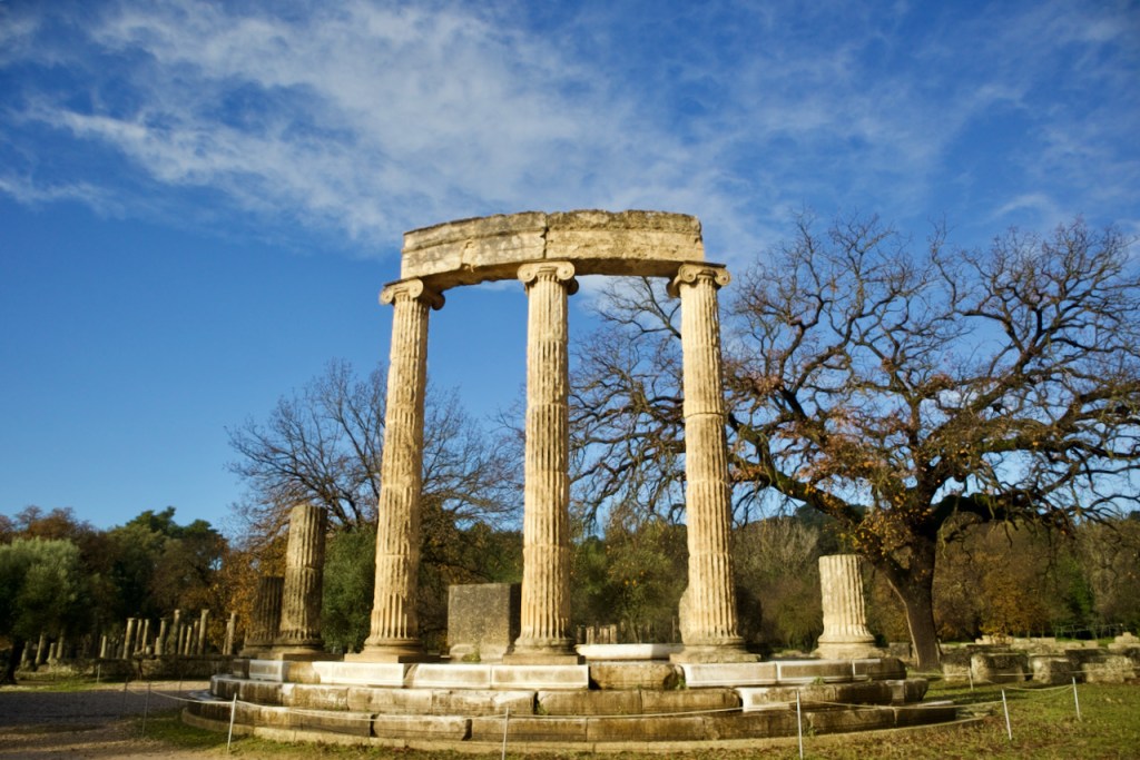 From Delphi on, it becomes a logistical challenge to reach other archeological sites in Peloponnese by public transport in January. To get to Olympia, I take a bus to Itea and manage to hitch a ride all the way to Antirrio, cross to Rio by ferry, take a tram to Patras, and wait patiently for the bus for Pyrgos. When the bus finally pulls in the terminal at 20:05, the last bus for Olympia has just left. A call to the driver and a pricey three-minute taxi ride later, I am finally bound for Olympia, sweating with the Olympic spirit. The important thing in life is not the triumph, but the fight; the essential thing is not to have won, but to have fought well ! I awake in this spectacular sanctuary where the ancient Olympic Games were held every four years from the 8th century BC to the 4th century AD. Everything seems so well thought through from the baths to the socializing gymnasion, wrestling ground, and ceremonial temples that Olympia must embody the ancient Greek ideal of perfection.