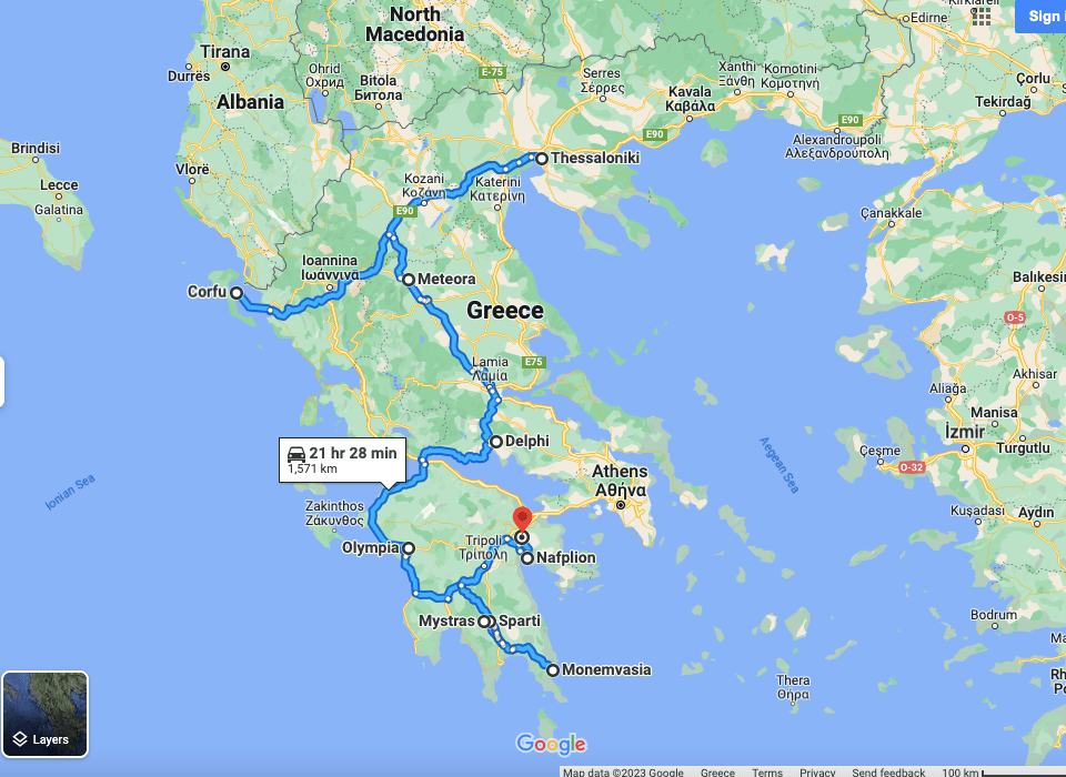 In Sarande, Albania, I hop on a ferry for Corfu and begin my three-month Greek odyssey in the less visited Northern part of the country. In a classic itinerary covering Venetian islands, old cities, scenic villages, stunning ruins, and UNESCO monasteries, I spend two weeks in Thessaloniki, Meteora, Delphi, Olympia, Sparta, Mystras, Monemvasia, and Nafplio before making my way to the gorgeous Saronic Islands. Living by the dictum of Kazantzakis, I soak it all in. I hope nothing. I fear nothing. I am free.