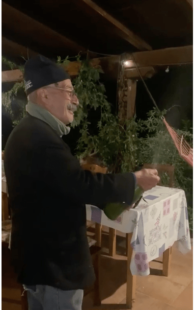 What a mixture of feelings when it’s all over – joy, relief, happiness, confidence, optimism, hope – as if a major threshold had been crossed, ushering one into a brand new territory. Alexandra prepared us a feast with home-baked crackers and eggplant dip, and in-season roasted pumpkin soup. Giuseppe, Antonello’s father, gifted us a huge bowl of frozen fruit punch and opened his very own vintage sparkling. The mousse sprayed everywhere and we gave out loud bouts of yogic laughter. It was straight out of a Fellini film set!