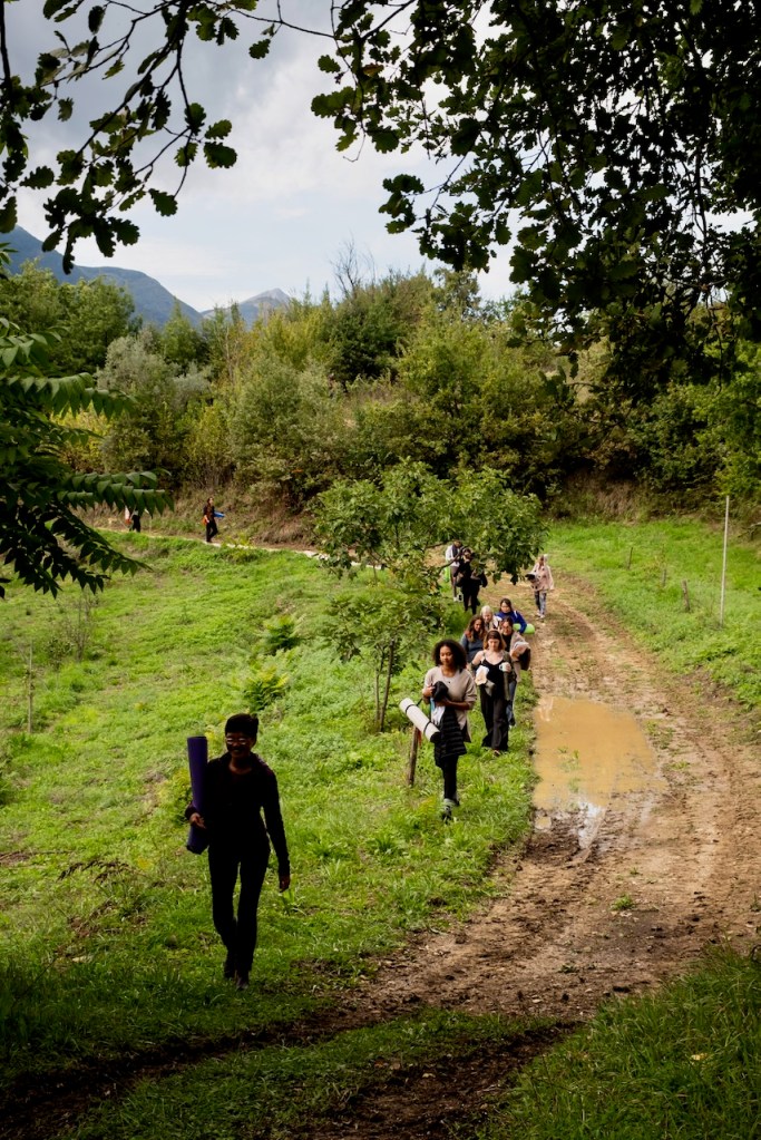 I still feel the vibrations from these beautiful teachings as I write this, far from the farm and everyone now. To close our training, Lorena and Chiara arranged an “angel’s walk.” Again, by chance or not, I was the first one to go, blessed with everyone’s murmuring wishes. And to top it all, we being in Italy, the bouquet finale of our YTT was naturally home-baked pizza in the once abandoned village of Antonello. Pleasure and transcendence, ideally in that order! Antonello’s right: sometimes the truest and deepest words we can utter might simply be: GRAZIE MILLE!