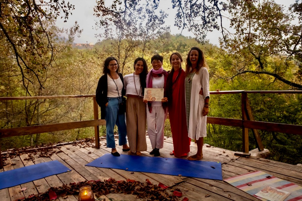 Gratitude, joy, and samadhi! I uttered three words to summarize my feelings, as Chiara and Lorena joined us at the end of Week 1 sharing circle. Few knew that it had been two full decades since I first practiced – and then mostly forgot about – yoga. This training, a total reset, meant so much to my mind and body. One by one, we gave thanks to our fabulous teacher, Shankari, for her spiritual teachings; to Ale, our incredible chef; and to Chiara and Lorena who created such a safe space for healing and growth to happen. Yoga is experience, Shankari said. Yoga training is a path to a higher goal, Chiara shared. Nothing happened by chance; we were a group of eighteen empowered women in the here and now, supporting each other in our transformative journey.