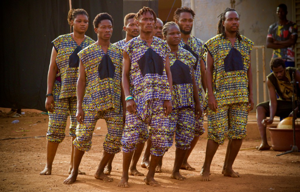 In Mali, locations are always given as “next to X, left of Y, in front of Z…” After turning around for twenty minutes in the district of Magnambougou, not far from the Niger River, we finally arrive in “the theatre.”