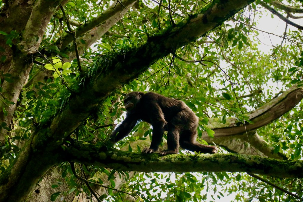 After a happy meal, they lounge in the shade where they play catch, going round and round… An adult blackback stares at me with intensely curious, almost interrogative eyes, as if to say, Oh, I haven’t seen you for a long while? Where have you been all this time?! Placide thinks he is seeing himself through my lens! Then, he starts beating his chest, a sign of sexual attraction…! I return his affectionate gaze with a few baritone Ummm-ummm, a vocalization that our guide has taught us to reassure him that we are friends. He shoots me a million-dollar “je t’aime de tout mon coeur” look! What an encounter!