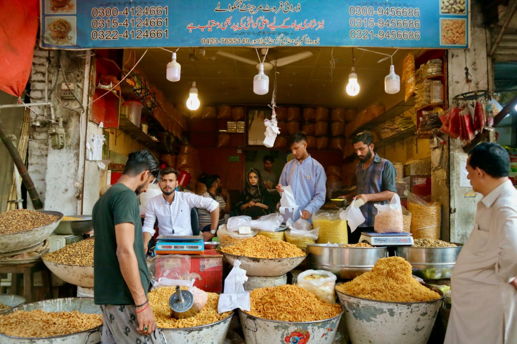 If breakfast in Bhatti Gate in old Lahore is a ritual, dinner is an institution. It begins with a seemingly limitless selection of snacks – samosas, pakoras, bhai puri, sev puri, gol gappa (different versions of chickpeas in puffs soaked in yoghurt and tamarind juice) – followed by supposedly appetite-opening paan (betel leaf with areca nut) chewing, then a tikka piece (chicken skewers) appetizer, before tackling a serious tawa (cast iron pan) of lamb or chicken, karahi (meat in tomato stew), aloo ghost (potato with meat) or tak-a-tak (offal, again!), always garnished with a mountain of nan or rice. Or, on slightly less hungry days, you can always opt for just a (very full) plate of mouth-watering beef/lamb biryani, though Lahorites would always tell you that their biryani is not nearly good enough, that you would have to fly to Karachi for that treat. Still room for dessert? Let’s get a Royal kulfi (traditional ice-cream) in Muslim Town or lychee ice-cream at Chaman on Mall Road…