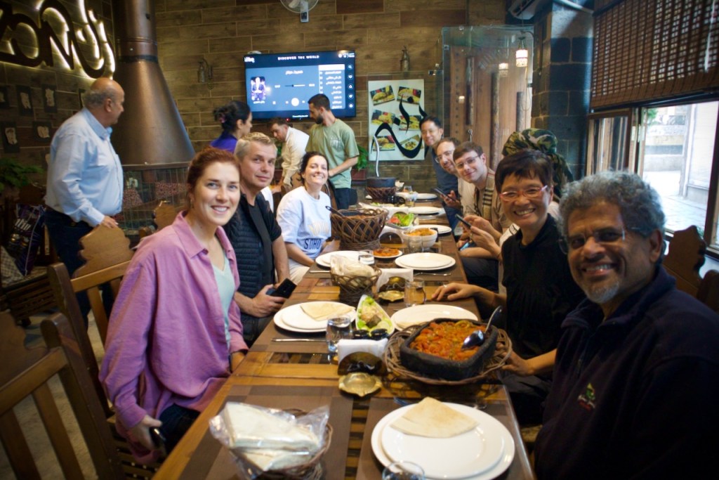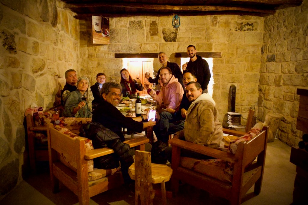 After a hearty bedouin lunch, we head to Jarjour Winery. Imagine all the political and religious red tape that Shadi, the young owner, has to navigate under the new regime. Tonight, the aromatic Chardonnay is still flowing, and we are joined by Badia, Mohammed, and Fadi, three talented musicians from a nearby village, who grace us with exotic local tunes to which we move and flex our body. What a marvellous way to end another extraordinary day in this rich land of history, culture, and pleasure!