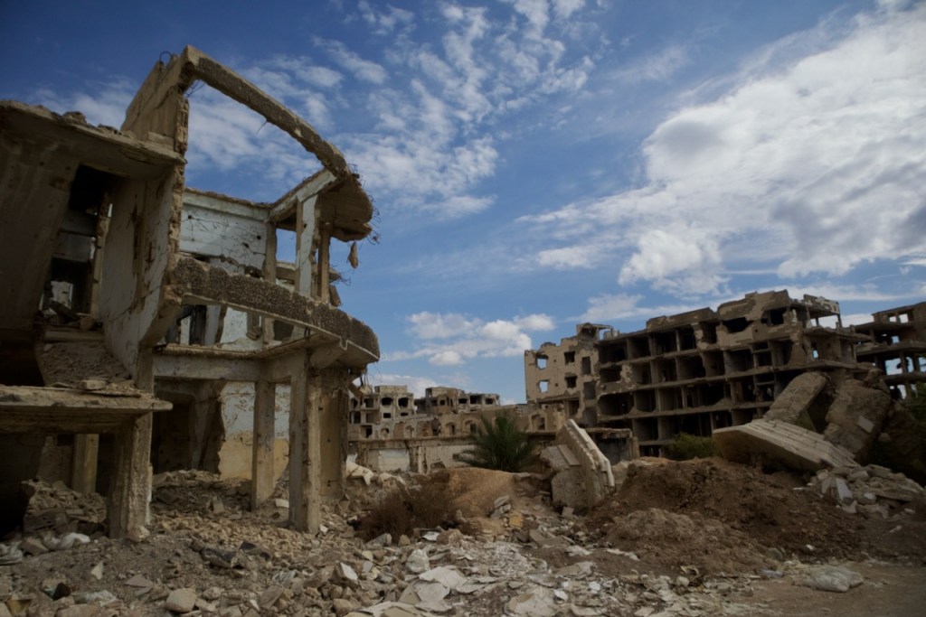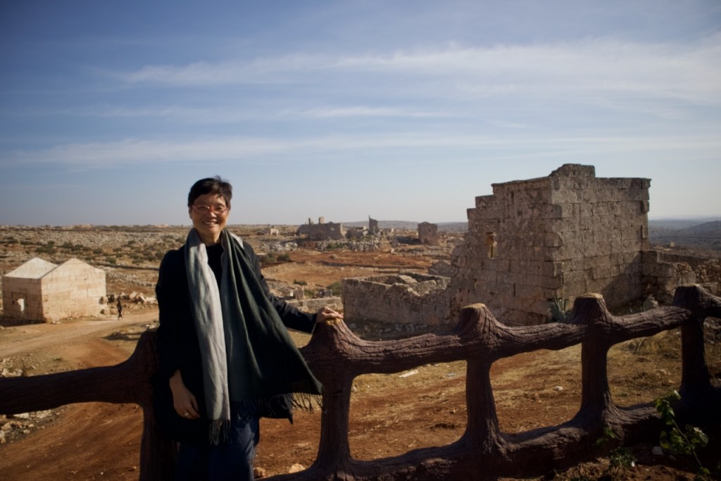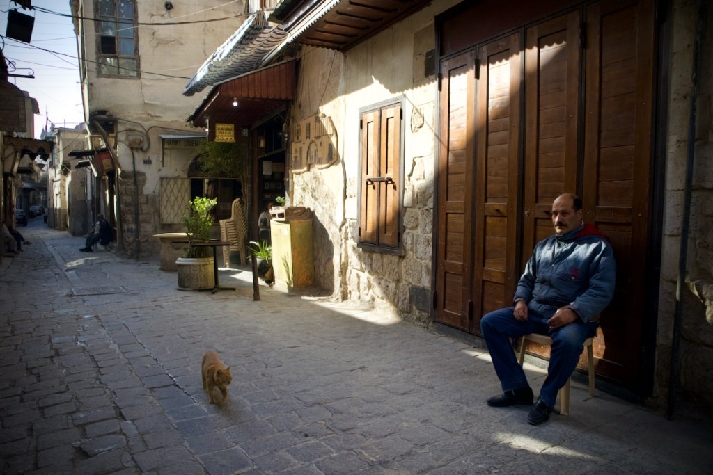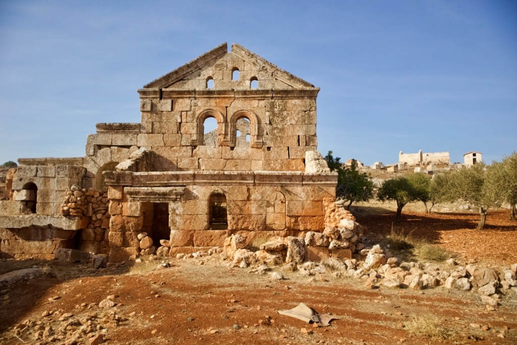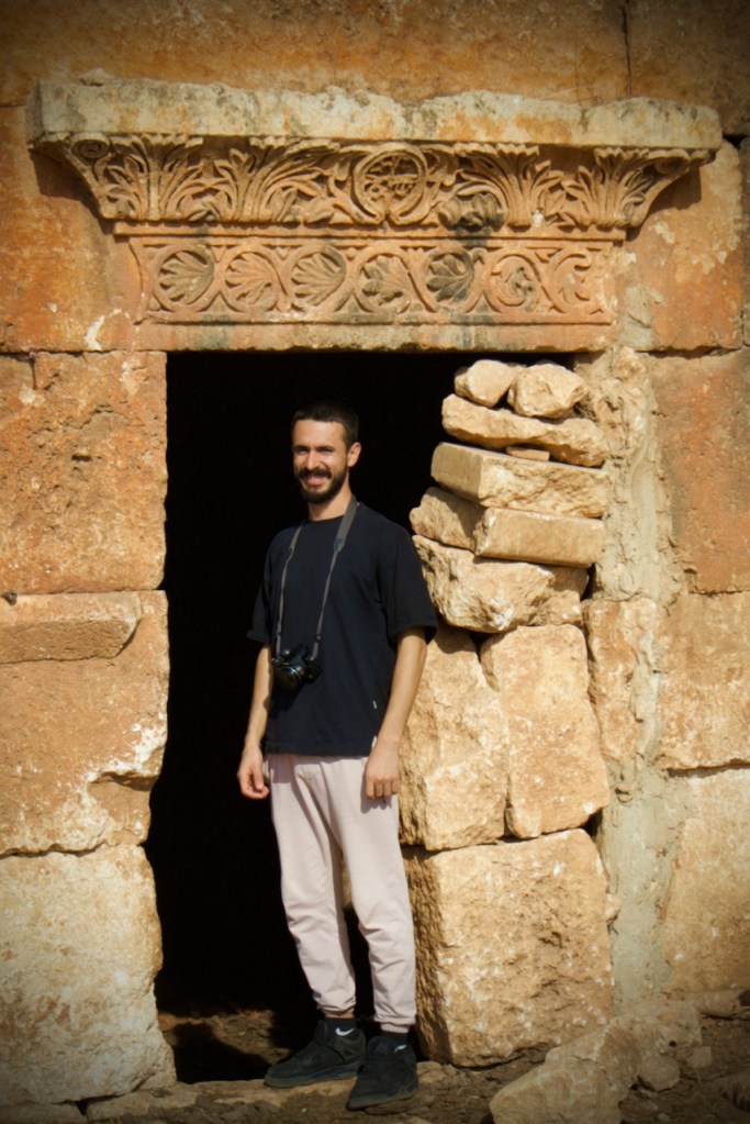 We cruise along the M5 frontline highway between Homs and Damascus, witnessing destruction village after village before we reach Serjilla, a UNESCO World Heritage site. One of the 40 ancient villages collectively referred as the “Ancient Villages of Northern Syria,” Serjilla is exceptionally well preserved as a testimony to rural life in late Antiquity and the Byzantine period. Founded in 473 BC and then slowly abandoned in the 7th-10th centuries due to shifting trade routes after the Arab conquests, it was a prosperous town that thrived on the cultivation of grapes and olives. With a villa here, a basilica there, residential houses and a bath, and a big olive press, the sprawling ruins are an absolute photographers’ paradise.