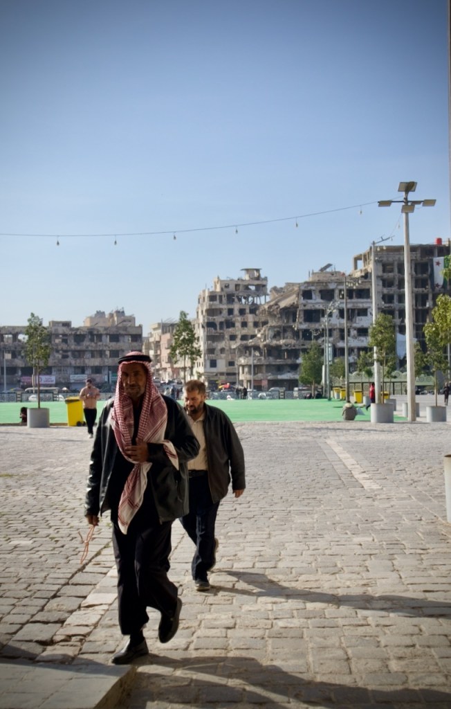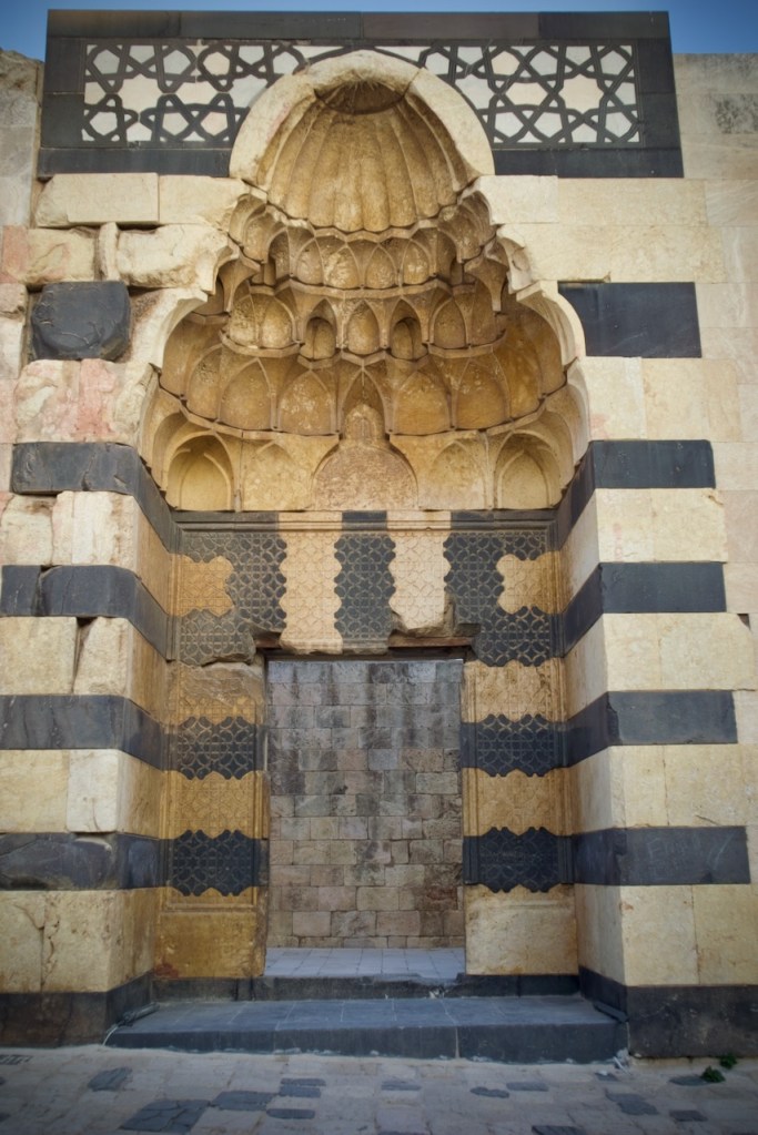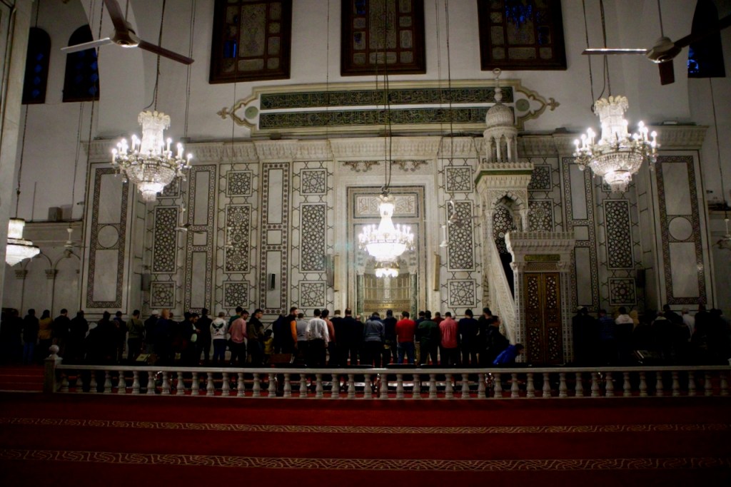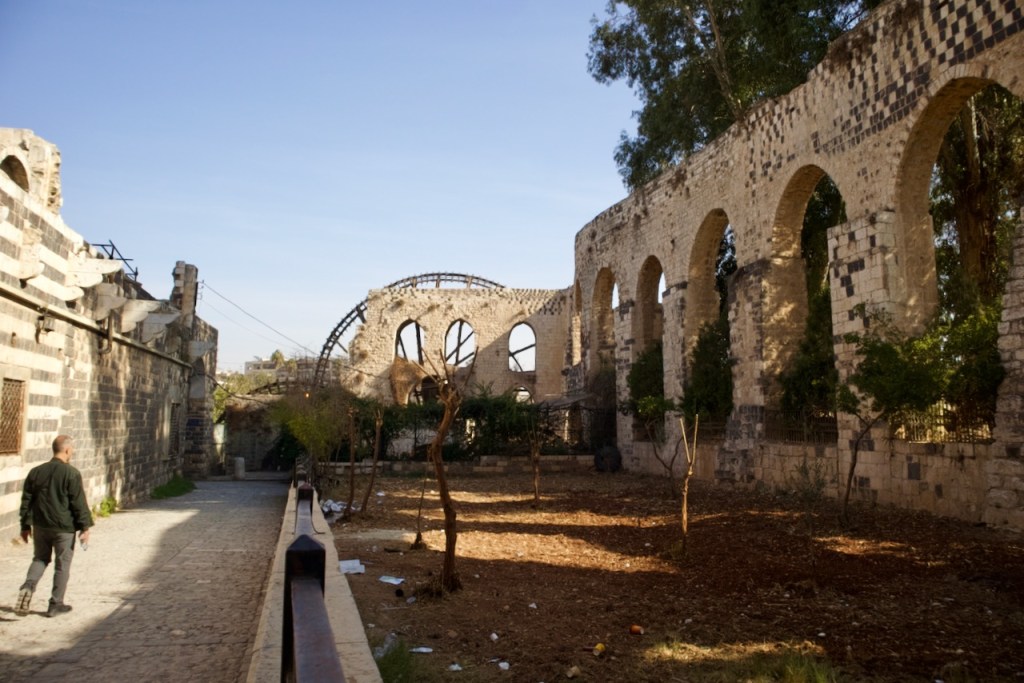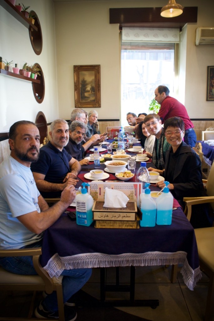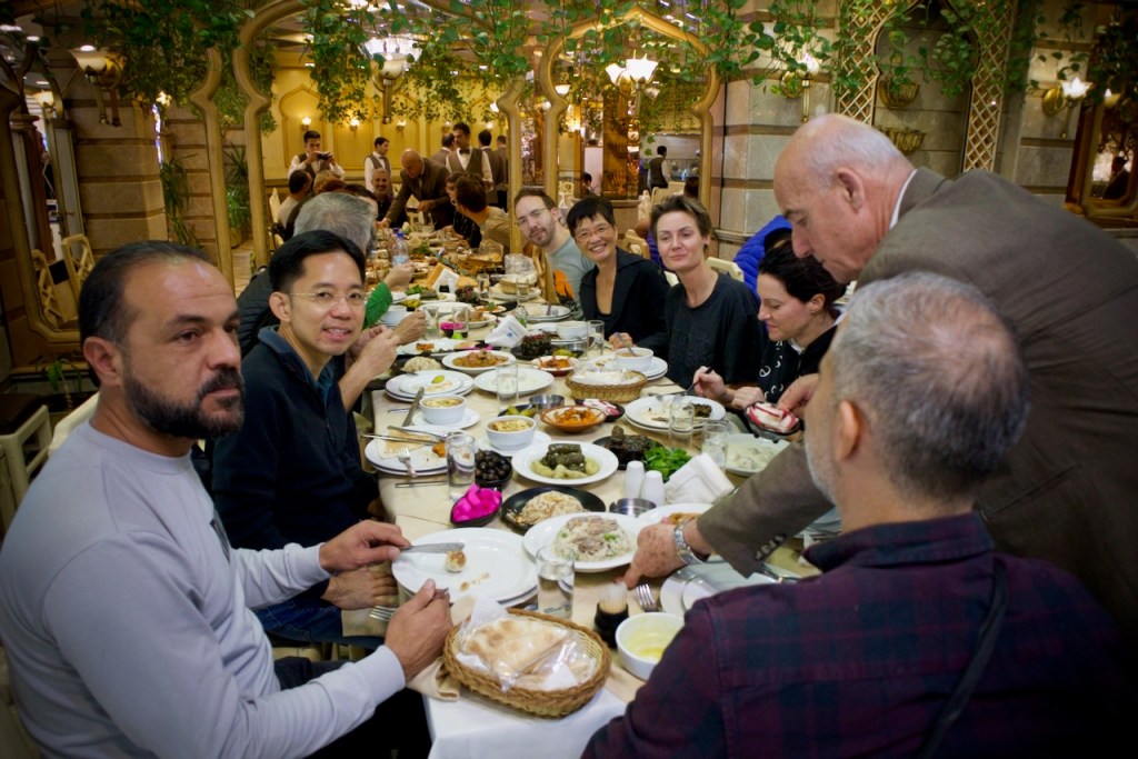Two more stops before lunch/dinner: Hama, famous for a series of seventeen norias, medieval water-raising machines for irrigation, and Homs, the vibrant city and birthplace of the Syrian civil war. Sadly, over 40% of Homs was destroyed, including part of the bazaar, one of the liveliest souks in all the Middle East. In the Great Mosque of Homs, a new rule relegates women to a tiny section in the back, causing indignation in our guides. Change is no doubt coming with the new government, in which way few could yet tell.
