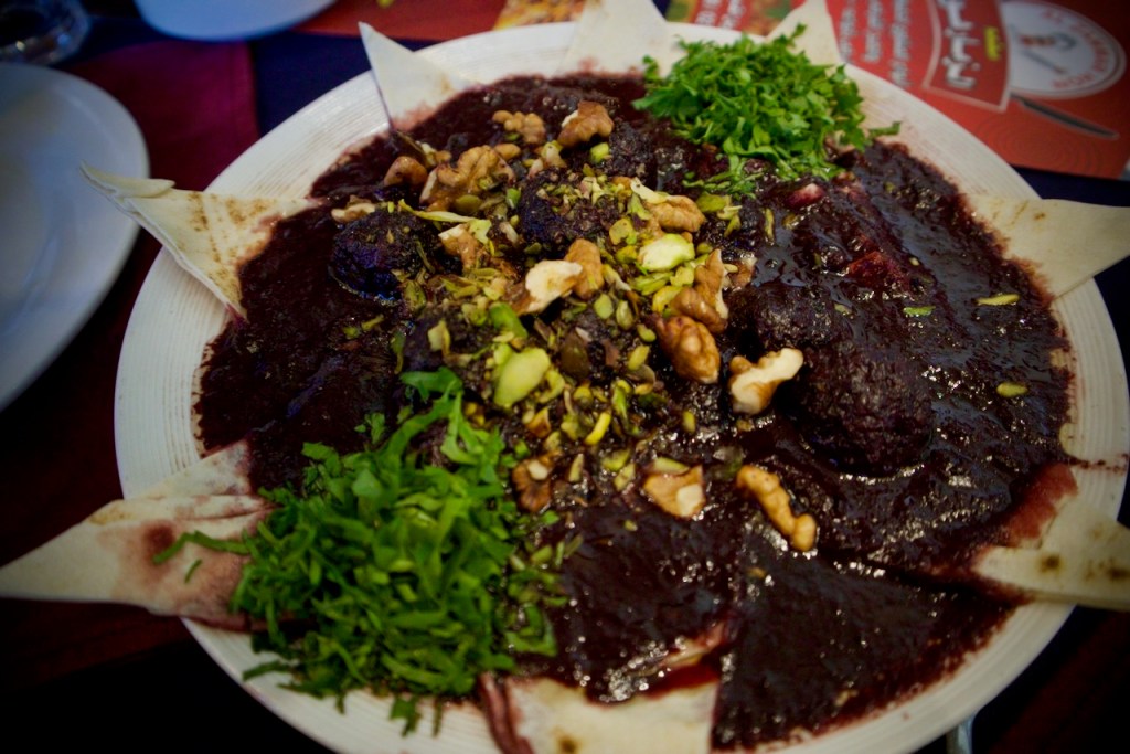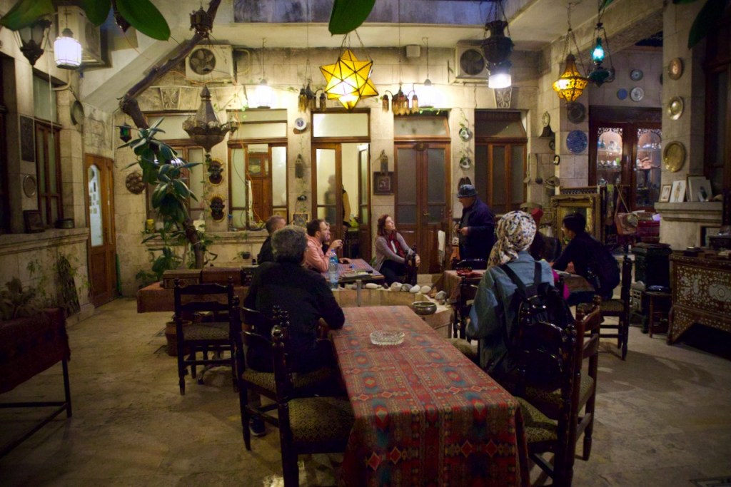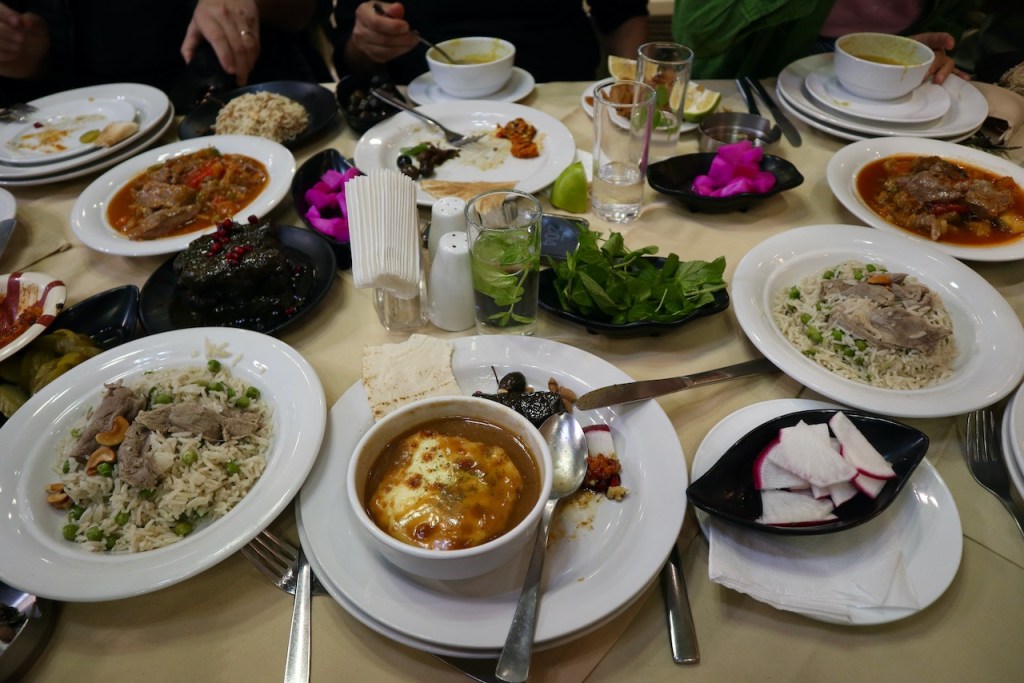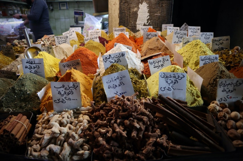 Time to get some spices, too, for the city is also renowned for Aleppo pepper and so much more. Now we are ready to taste famous local cuisine at Al Zamar: kibbeh (seasoned mixture of minced lamb and bulgur wheat) many ways, cherry kebab, baba ghanouj, and an assortment of scrumptious dips. Impossible not to love Aleppo!