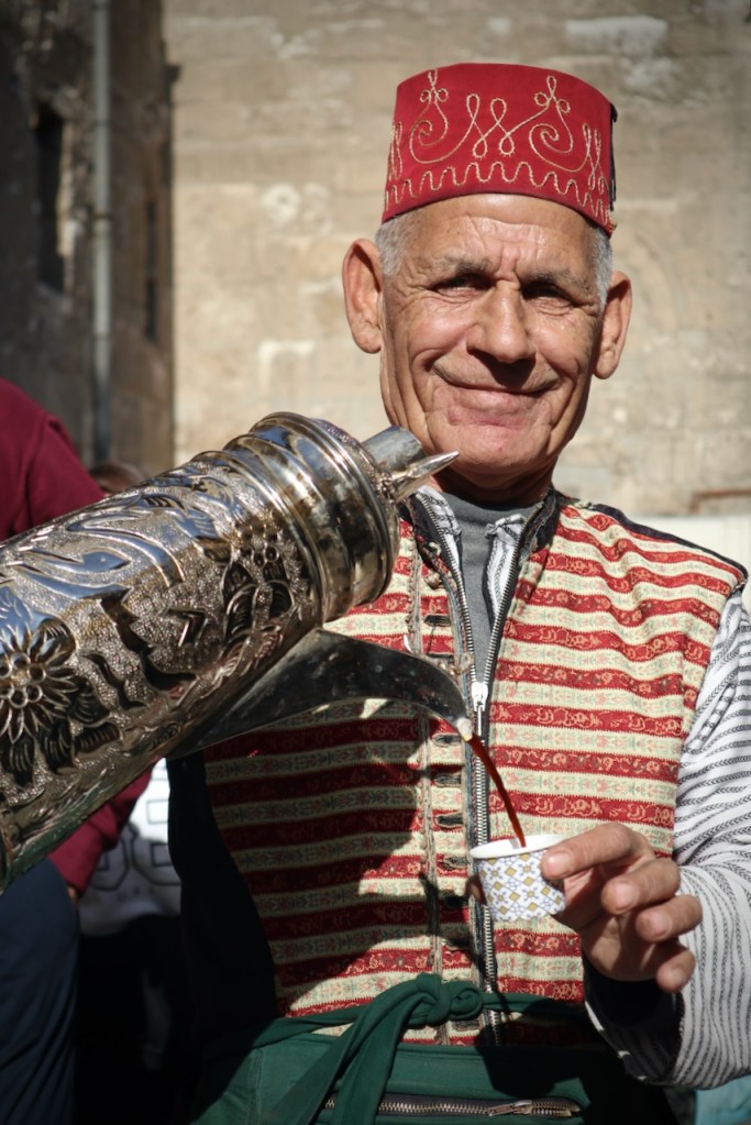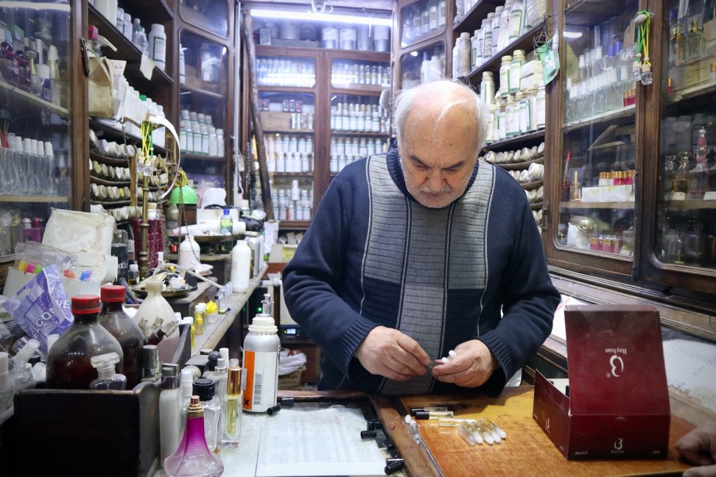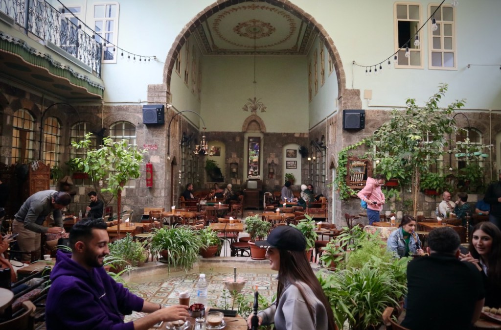 The food street and souk are teeming with locals. What a pleasure to see the Damascene going out, enjoying drinks and shisha, sweating out in a hammam, tasting whatever that is left of the good old life. It used to be much more crowded and places open till later, Bashar says, before the new government puts in stricter rules about everything. Our long first day ends in a charming 500-year-old cafe, Al Noufara, where Ahmad Allaham, the one-and-only remaining storyteller, tells ancient tales in classical Arabic from the 12th century with his magic wand. The audience oohs and awws, chiming in: How does she look like? And then, and then?… It reminds me of Place El Fna in Marrakech where gifted storytellers enthral a captivated audience with a similarly rich oral tradition. The night is still young; a few of us go in search of a bar with live music. I am floating; everything feels like a dream…