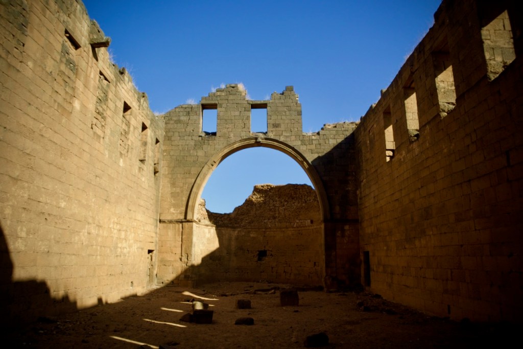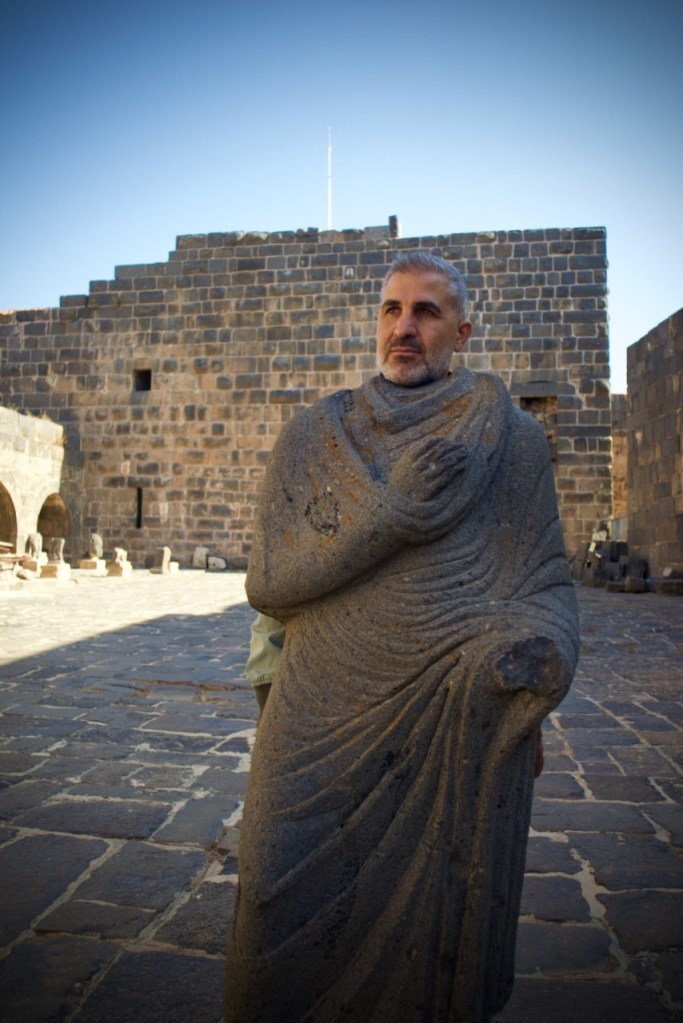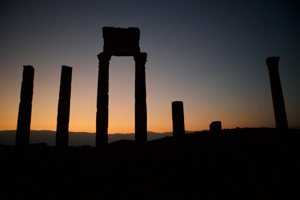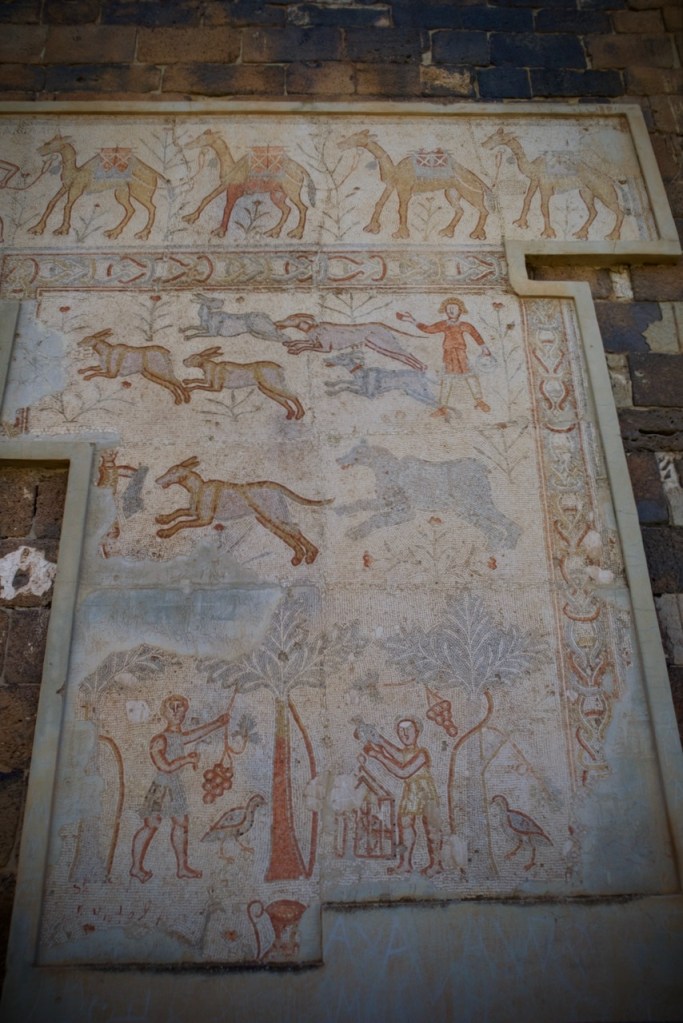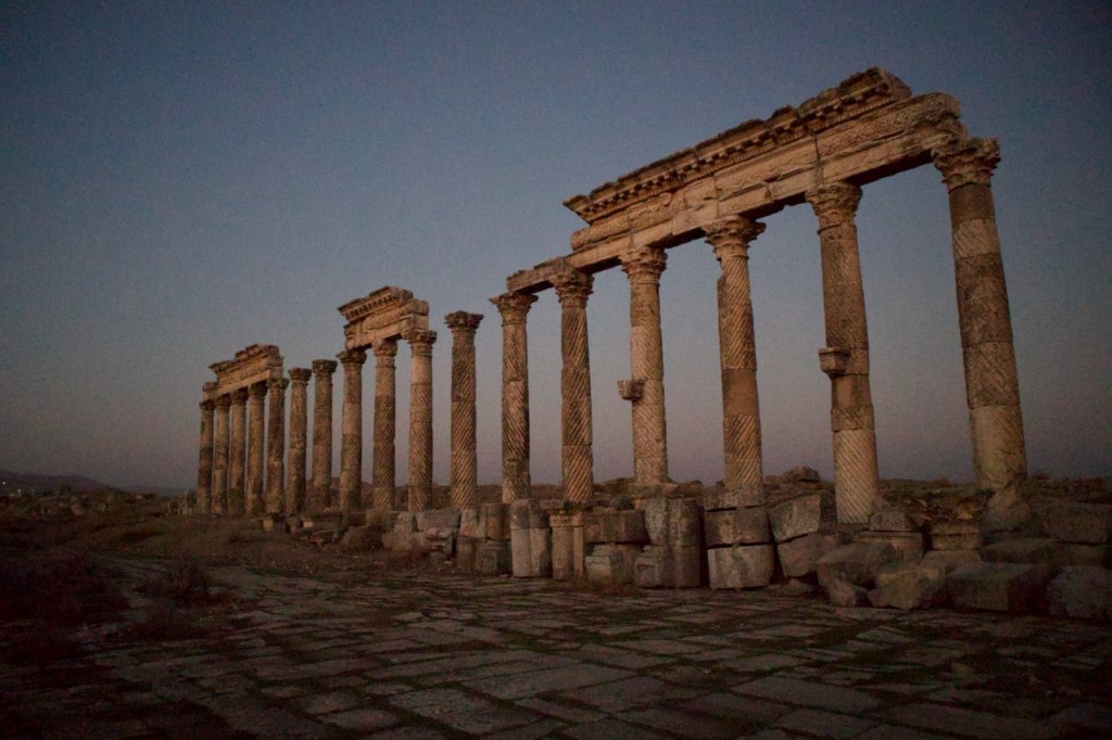 Too much good food and we arrive in our last destination of the day just before dark to see the magnificent Roman columns cloaked in pink and crimson. An ancient Greek and Roman city founded circa 300BC and abandoned by the 13th century, Apamea is known for one of the longest colonnaded streets in the Roman Empire – almost 2km! – and the largest amphitheaters of antiquity. In the quasi anarchic state post-Assad, locals have been digging hard and deep like amateur archaeologists, making over 2,000 pits around the site, to find – and sell – coins and statuettes. I hope no foreign tourists have the vanity of owning a piece of Roman antique and/or then resell to dealers in Paris, London, or Berlin, succumbing to the temptation of such windfall acquisitions. Antiquities are considered state property and their exports are strictly prohibited under Syrian national law, even if x-ray machines at the Damascus airport fail to sound an alarm. How do I rebuild my house? a local rebukes when challenged by our guide. Looting, burglaries, and smuggling have been so rampant since the fall of Assad that theories of justice in Philosophy 101 come back to mind. When – if ever – is it just to steal? No doubt these are hard times for many Syrians still reeling from a major national trauma, but ethical questions remain.