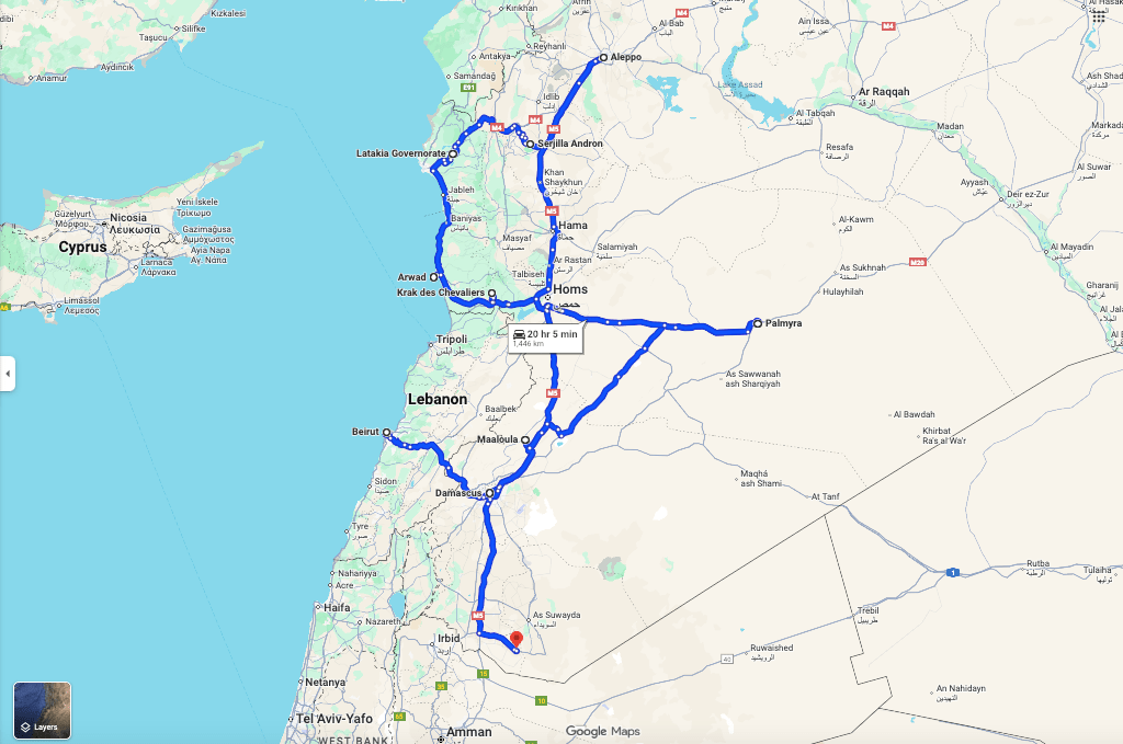I was in the Bekaa Valley in Lebanon for a documentary photo project on Palestinian and Syrian refugees in 2018. Syria was just across the mountains, so close and yet so faraway. The civil war was still raging then; it was not the most prudent thing to overland. Seven full years later, the road takes me back to this beautiful but troubled region. I arrive two days early before my tour in Syria begins so I could revisit Beirut, this gem of a city in the Middle East. From Gemmayze, Beirut’s Soho, I retrace my steps from the bohemian neighbourhood to the city centre, passing through charming cafes and trendy bars, the grand Mohammed Al Amin Mosque and the bullet-riddled Martyrs’ Square. The economic crisis has worsened still since my last visit. Hyperinflation now requires merchants to have bill counting machines. One euro gets you 100,000 Lebanese pounds, and a taxi ride sets you back a million! I imagine locals dedicating entire rooms to store their rapidly devaluing bills. In addition to pockmarked buildings from the civil war era, the cityscape is now dotted with plenty of unfinished building projects like the Four Seasons and the Hiltons. As if life was not hard enough, bombs fell in Beirut centre as part of the fallout of the Israel-Palestine conflict before the ceasefire was implemented just a month earlier. Beirut feels enveloped in some passing cloud of doom that no glitzy nightlife or nonstop flowing booze could gloss over…