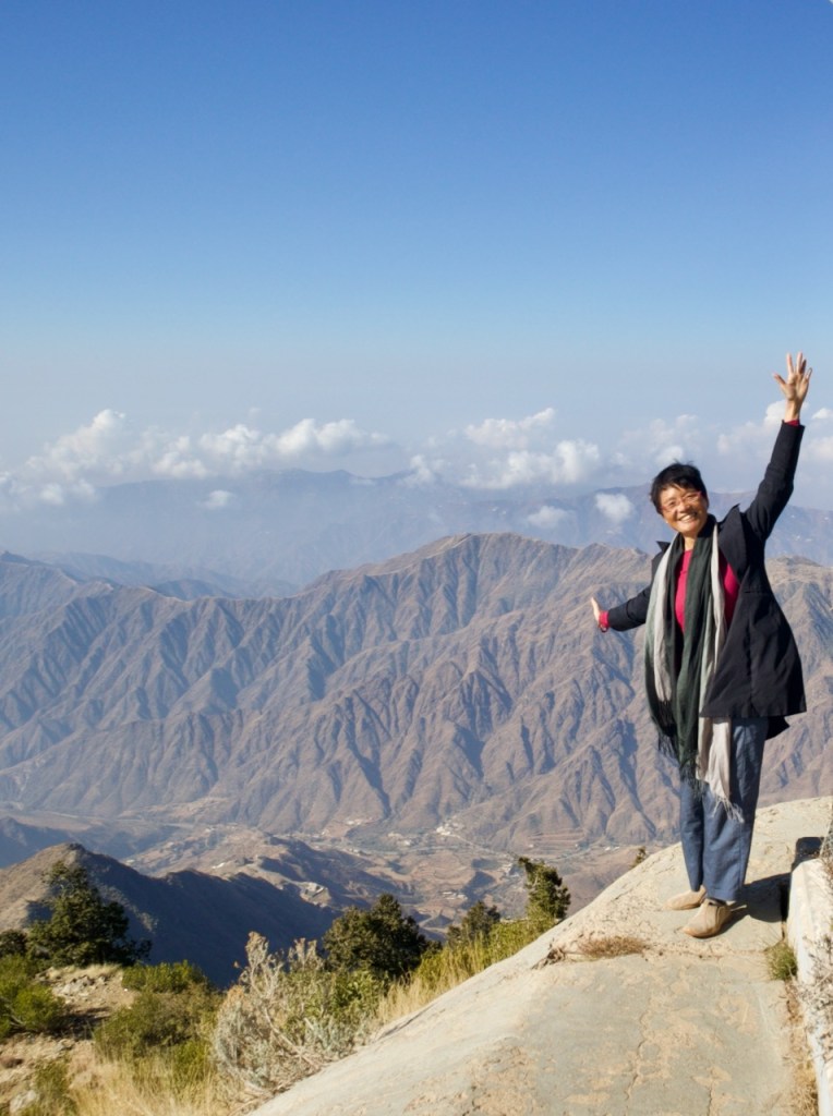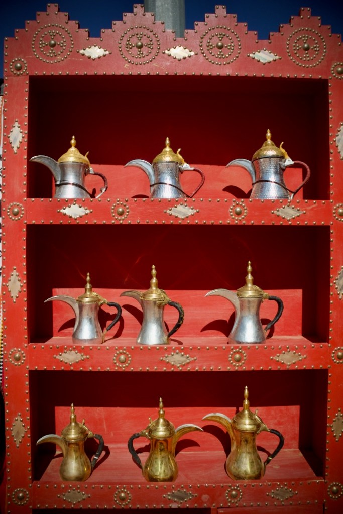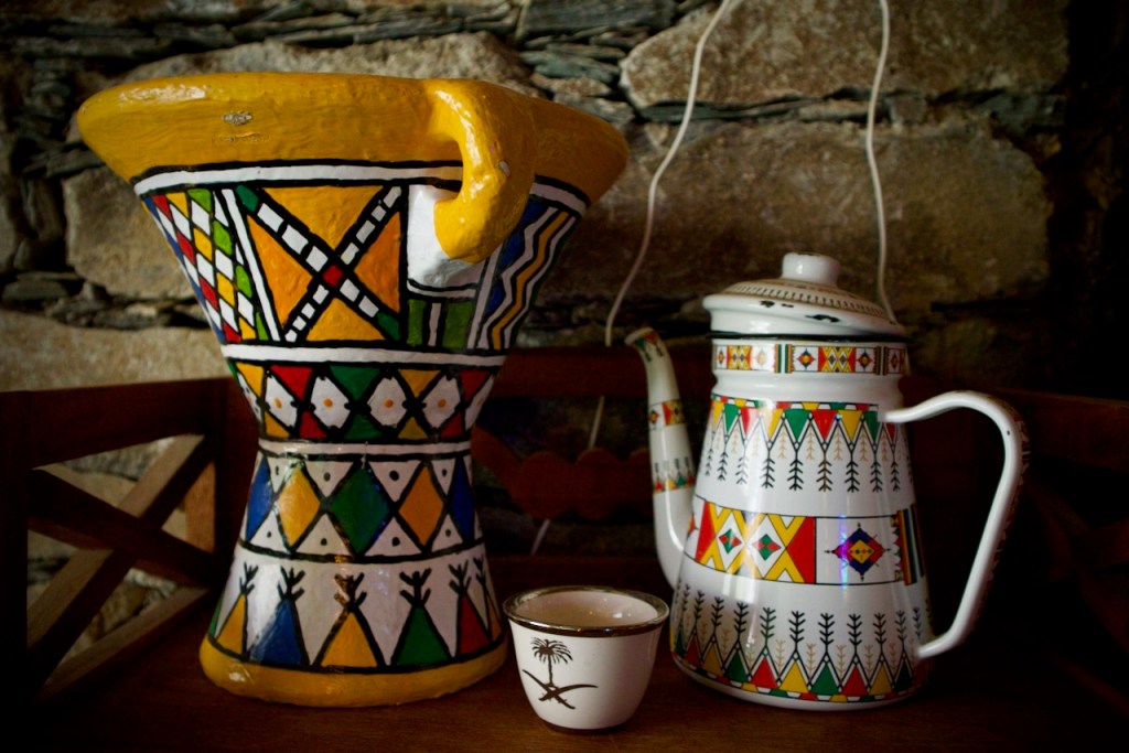 Rijal Almaa was once a main stopover for people coming from Yemen to Mecca and Medina, becoming an important trading center. Never totally succumbing under Ottoman rule, it kept its traditional architecture and customs. Nearby is a honey farm, an eco-project that has attracted over a million visitors. What a sweet moment to taste 53 different kinds of honey and marvel at the creativity of the farm owner. Gary works in Jeddah and gets tips on local restaurants worthy of Michelin stars. Lucky me to tag along for a tasty traditional grilled lamb lunch before we continue to visit a orchard-vineyard (sans wine!). With a vast plantation of pomegranate trees and grapes and so much more, it is totally a labor of love by Mohammed, the owner, who treats us to a much-need late afternoon coffee before we make it back to Abha.